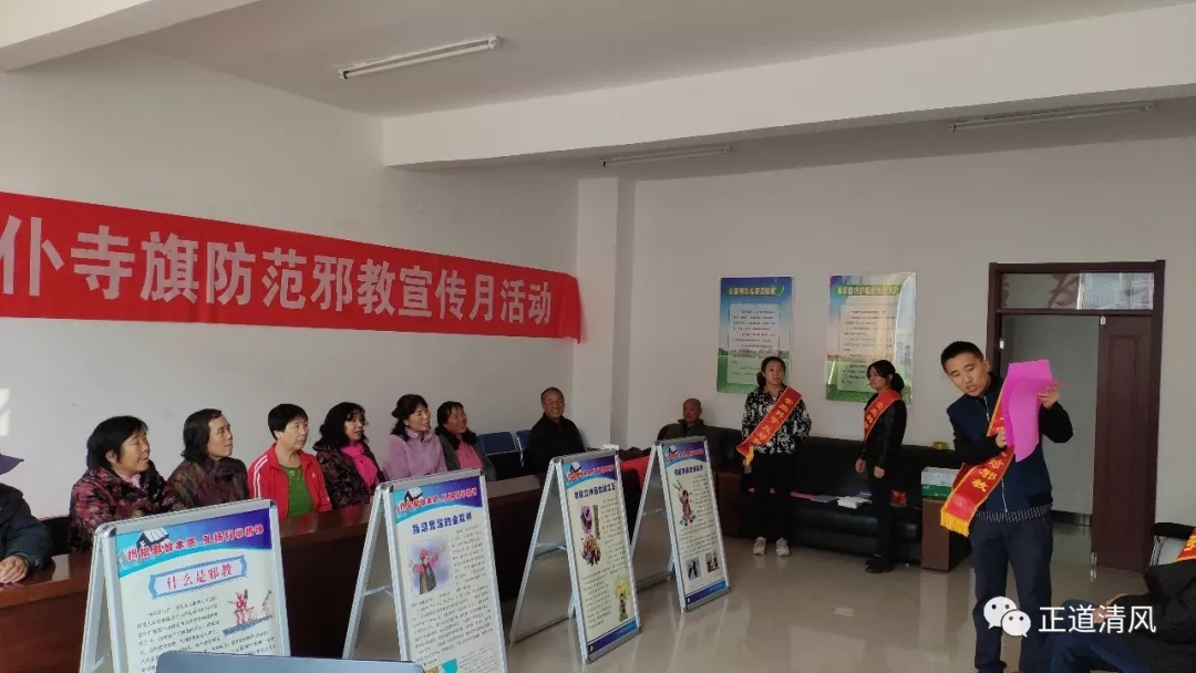 活动中,旗反邪教一线工作人员从邪教的种类和本质、辨别邪教的基本方法、如何抵制邪教侵害等方面进行了生动讲解,说明了群众举报邪教的途径和方法,并回答了部分群众提出的有关问题。同时教育引导大家在面对邪教时坚决做到“四不”,即:不听、不看、不信、不传。