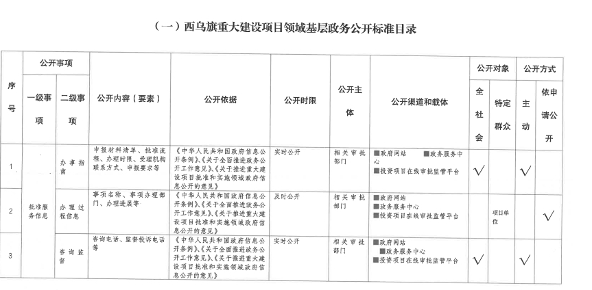 西乌旗重大建设项目领域基层政务公开标准目录_锡林郭勒盟行政公署