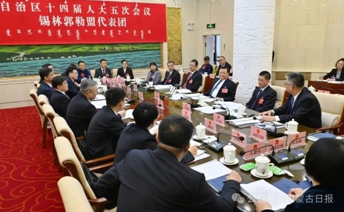 2月5日,自治区党委书记、人大常委会主任王伟中参加自治区十四届人大五次会议锡林郭勒盟代表团审议。