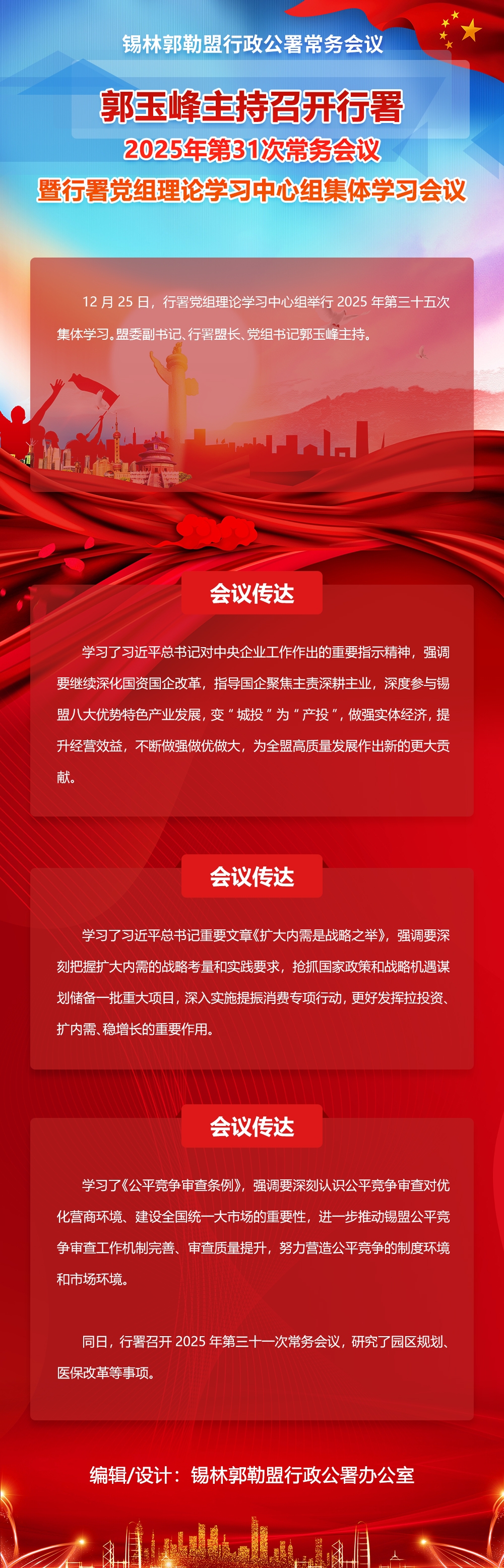 图解:郭玉峰主持召开行署2025年第31次常务会议暨行署党组理论学习中心组集体学习会议_锡林郭勒盟行政公署