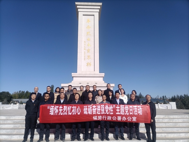 在第十个国家烈士纪念日即将到来之际,为深入落实学习贯彻习近平新时代中国特色社会主义思想主题教育“学思想、强党性、重实践、建新功”的总要求,缅怀革命先烈,传承红色基因,9月27日上午,行政公署办公室组织机关党员干部赴锡林浩特市烈士陵园组织开展“缅怀先烈忆初心 砥砺奋进强党性”主题党日活动,祭奠不朽英魂,汲取奋进力量。