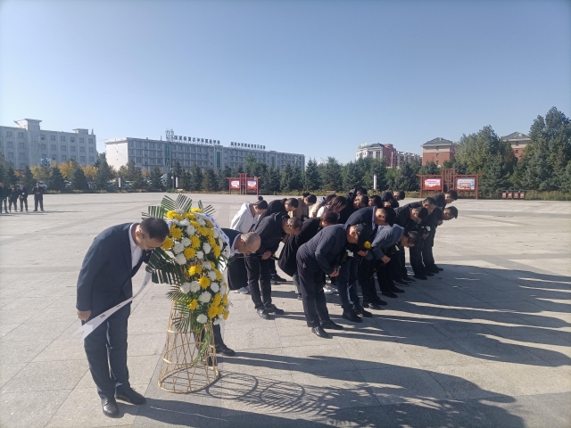 秋风萧瑟,万木含悲,烈士陵园庄严肃穆,巍然矗立的纪念碑上“革命烈士永垂不朽”八个大字苍劲有力。8时50分,在行署秘书长、办党组书记额日巴日斯同志的带领下,机关党员干部整装肃容、整齐列队,奏唱国歌,正式开始悼念活动。办公室副主任刘希文同志宣读祭文,表达对先烈先辈的无限追思和崇高敬意。机关干部职工静默肃立,向为民族独立、人民解放英勇牺牲的烈士鞠躬默哀。随后,大家有序列队,依次走上台阶,敬献花篮花束,缓步绕行瞻仰烈士纪念碑,追思先烈的丰功伟绩。活动尾声,机关党员干部在纪念碑前,面向鲜红的党旗,紧握右拳重温入党誓词,在一字一句、铿锵有力的誓词中,强化党性锤炼,坚定理想信念,砥砺初心使命。