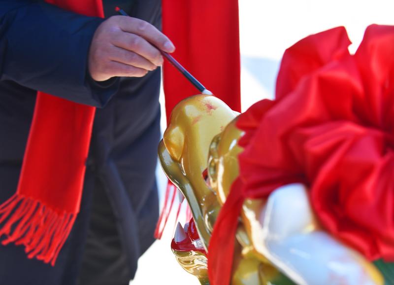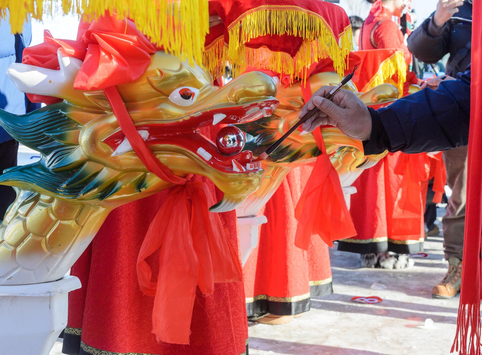 在冰上龙舟点睛仪式环节,受邀嘉宾手持朱砂笔,郑重地为龙舟轻点朱砂。一点眼睛,祈愿风调雨顺、国泰民安;二点天庭,寓意吉星高照、鸿运当头;三点鼻子,象征和谐幸福、万家平安;四点口利,祝福笑口常开、大吉大利;五点龙角,期望龙舟为赛事带来吉祥健康、快乐如意。世界各地的运动员汇聚于此,共同见证这一中华传统仪式,感受中华文化的博大精深。