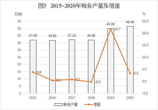 全年粮食产量46.48万吨,比上年增长3.3%。其中,马铃薯产量19.58万吨,下降3.9%;莜麦产量10.11万吨,增长10.4%;玉米产量8.94万吨,增长8.9%;小麦产量7.54万吨,增长9.3%。