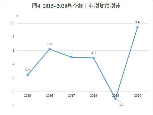 全年全部工业增加值比上年增长9.4%。其中,规模以上工业增加值增长14.2%。在规模以上工业中,分经济类型看,国有控股企业增加值增长5.1%,股份制企业增长11.9%,外商及港澳台商投资企业增长30.7%。分门类看,采矿业下降0.9%,制造业增长71.6%,电力、热力、燃气及水生产和供应业增长18.1%。分重点行业看,能源工业增长3.5%,冶金工业增长14.4%,化工行业增长4.1%,装备制造业增长3.2倍;农畜产品加工业下降3.8%,建材工业下降11.6%。