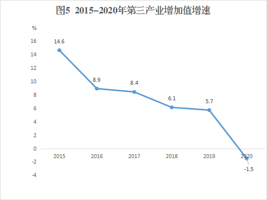 全年批发零售业增加值52.69亿元,比上年下降0.5%;交通运输、仓储和邮政业增加值63.02亿元,下降4.0%;住宿和餐饮业增加值14.70亿元,下降14.9%;金融业增加值32.04亿元,增长4.1%;房地产业增加值27.52亿元,增长4.3%;其他服务业增加值154.89亿元,下降1.3%。全年规模以上服务业企业实现营业收入70.15亿元,比上年下降8.4%。