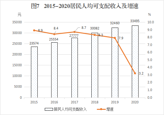 全年居民人均可支配收入33495元,比上年增长3.2%。按常住地分,城镇常住居民人均可支配收入41391元,增长1.5%。农村牧区常住居民人均可支配收入18864元,增长8.5%。