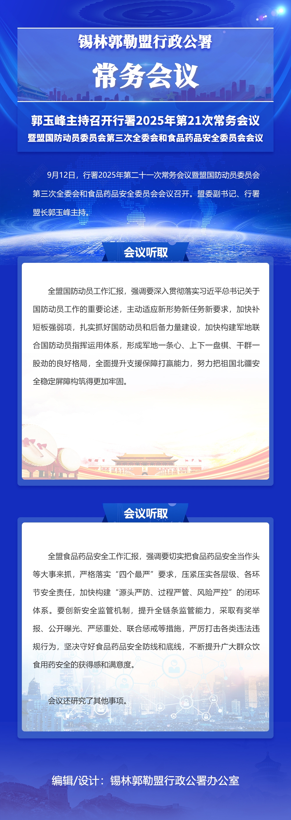 郭玉峰主持召开行署2025年第21次常务会议暨盟国防动员委员会第三次全委会和食品药品安全委员会会议