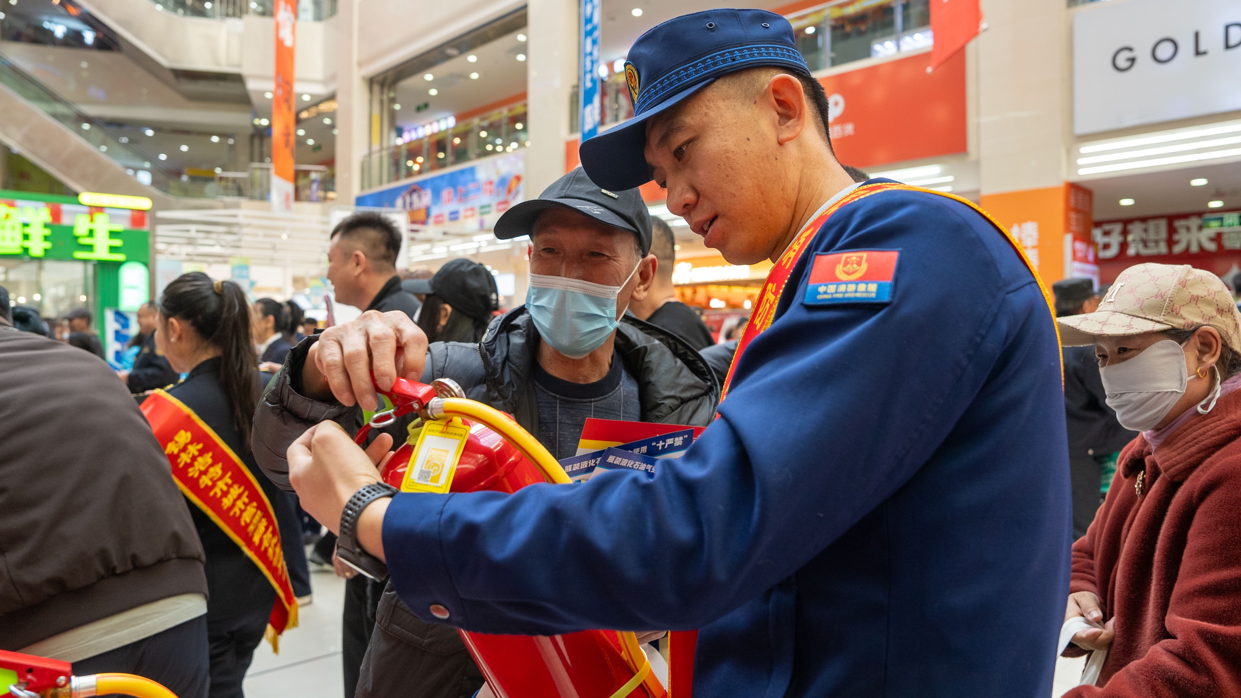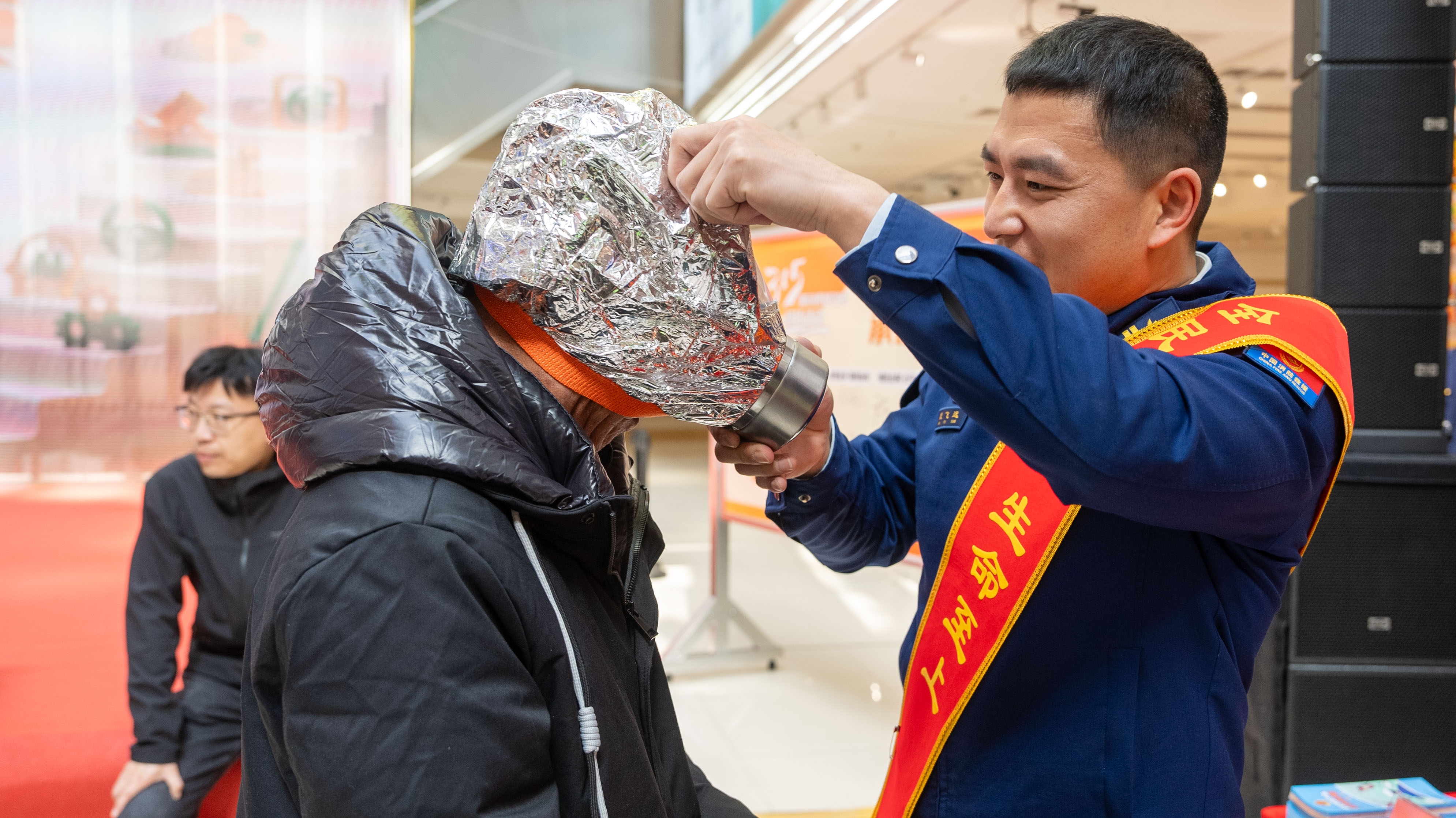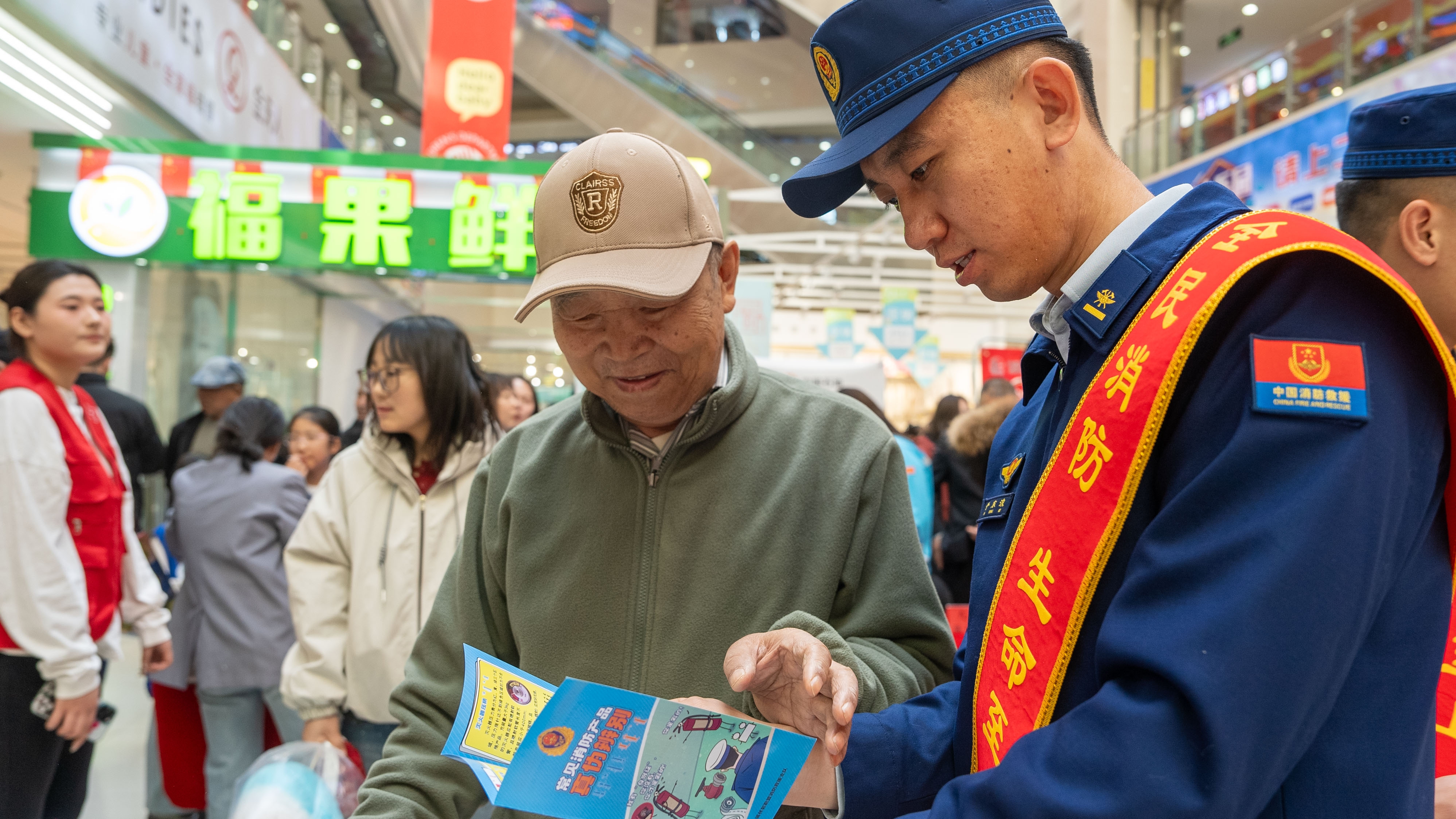 支队结合商场人流密集、消费场景集中的特点,在商场中庭区域设立固定宣传展台,摆放消防产品宣传展板、以日常常用的手提式灭火器、消防应急照明灯、疏散指示标志、过滤式消防自救呼吸器等产品为重点,通过实物对照、现场拆解、实操演示的方式,直观讲解合格消防产品与假冒伪劣产品的核心区别,同步发放消防产品识假辨假手册等宣传资料,面向过往购物群众、商场经营商户开展点对点宣传。