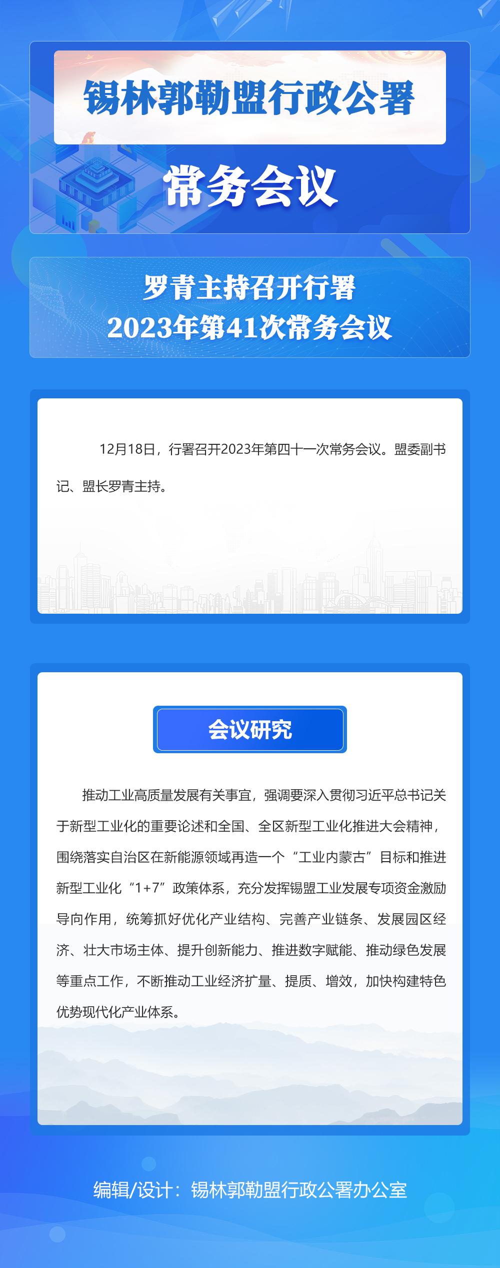 图解:罗青主持召开行署2023年第41次常务会议_锡林郭勒盟行政公署