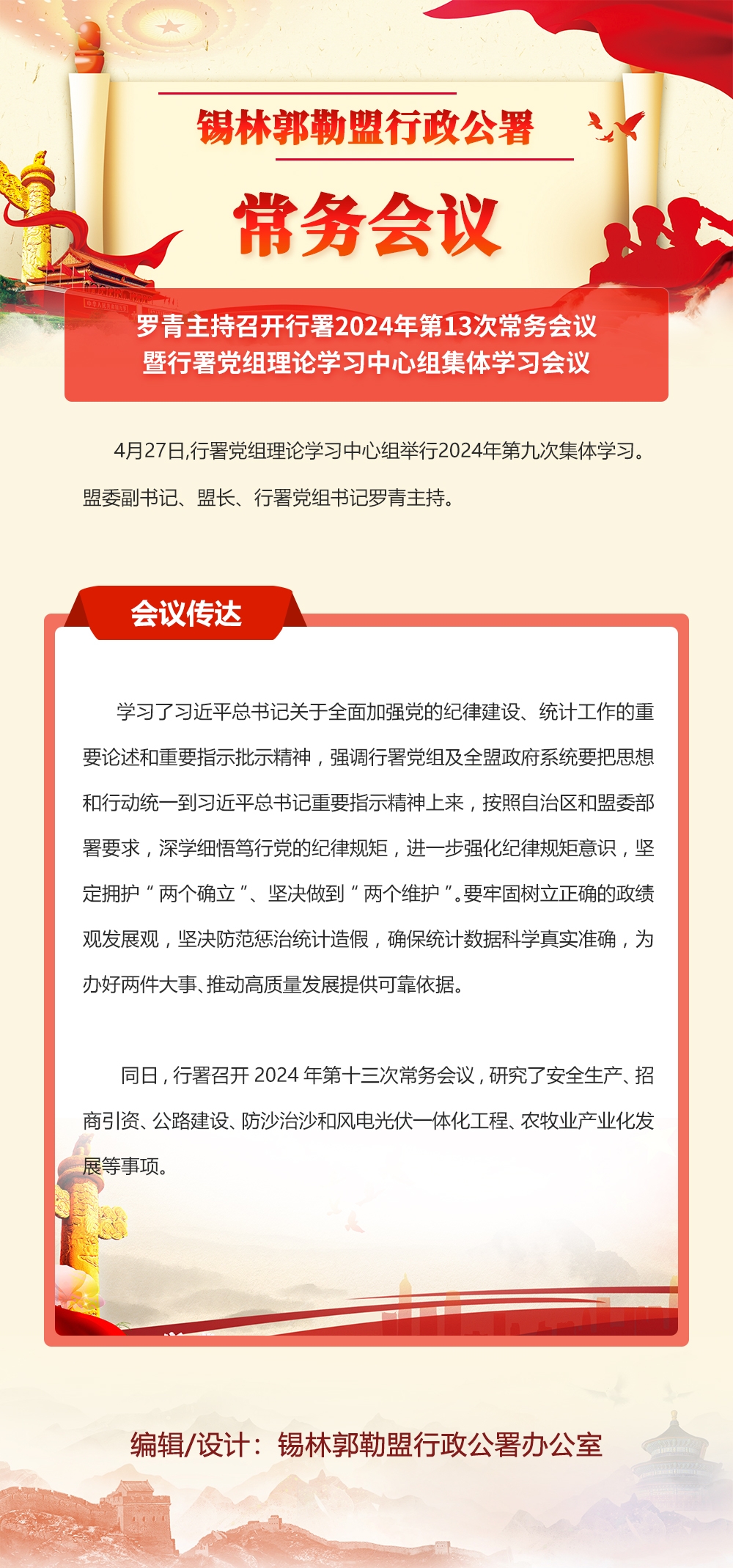 图解:罗青主持召开行署2024年第13次常务会议暨行署党组理论学习中心组集体学习会议_锡林郭勒盟行政公署