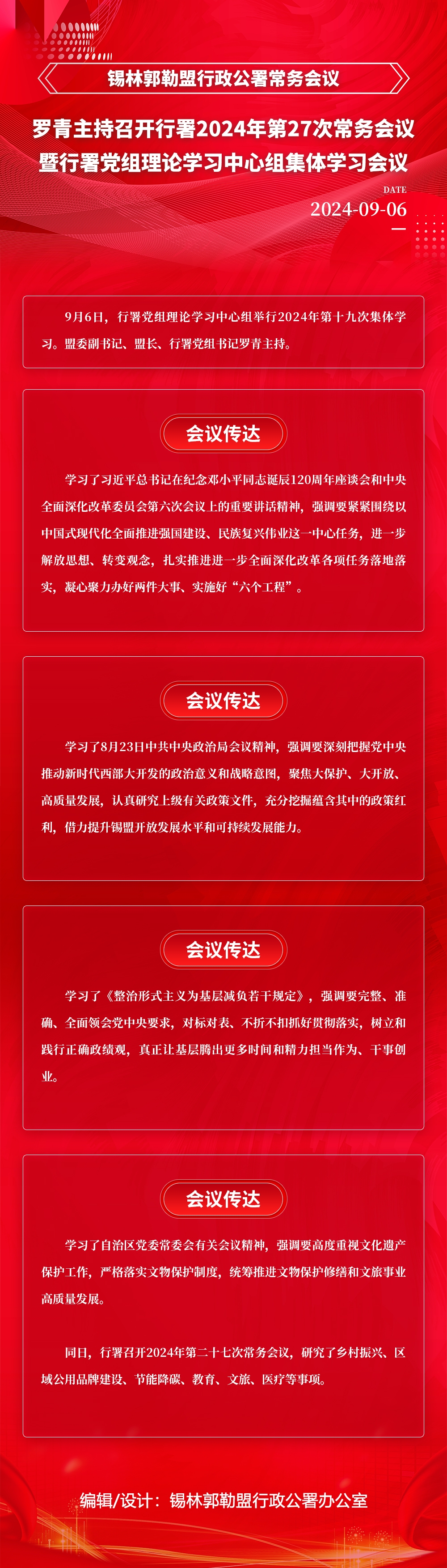 图解:罗青主持召开行署2024年第27次常务会议暨行署党组理论学习中心组集体学习会议_锡林郭勒盟行政公署