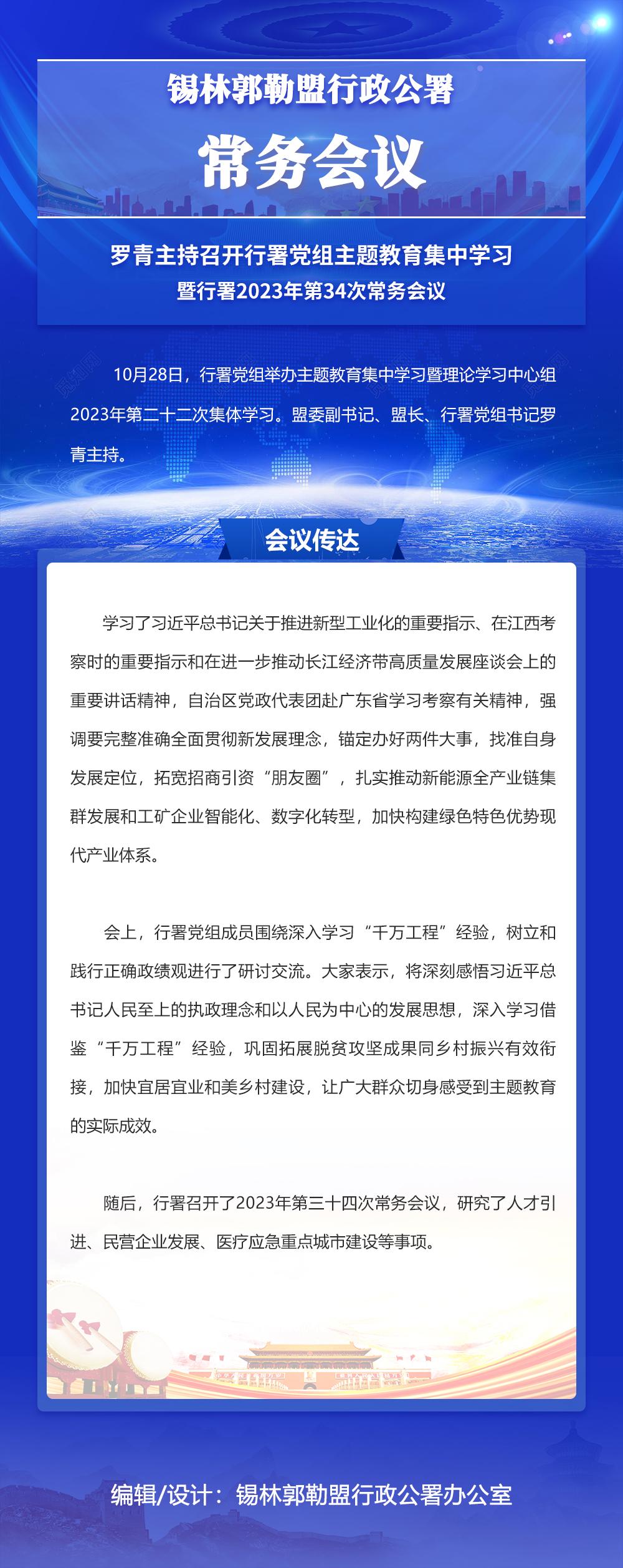 图解:罗青主持召开行署党组主题教育集中学习暨行署2023年第34次常务会议_锡林郭勒盟行政公署