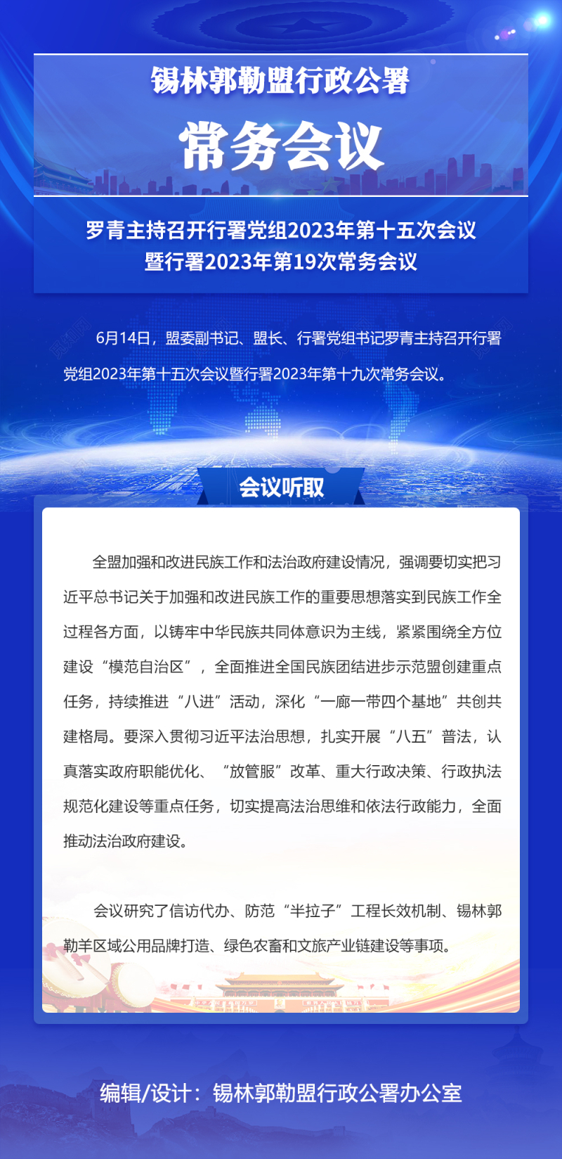 图解:罗青主持召开行署党组2023年第十五次会议暨行署2023年第19次常务会议_锡林郭勒盟行政公署
