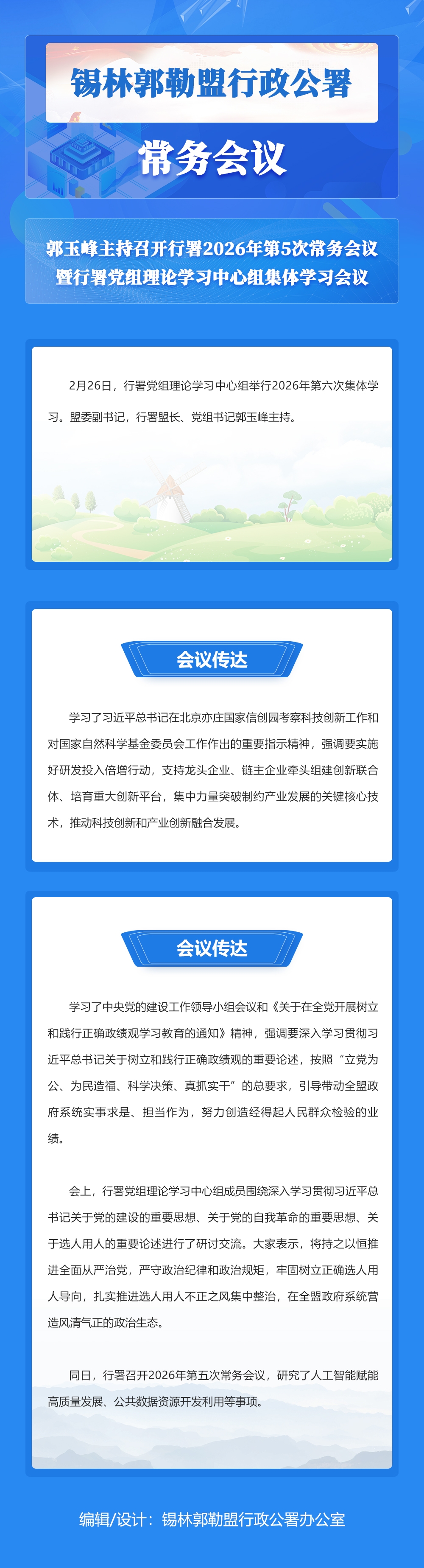 图解:郭玉峰主持召开行署2026年第5次常务会议暨行署党组理论学习中心组集体学习会议_锡林郭勒盟行政公署