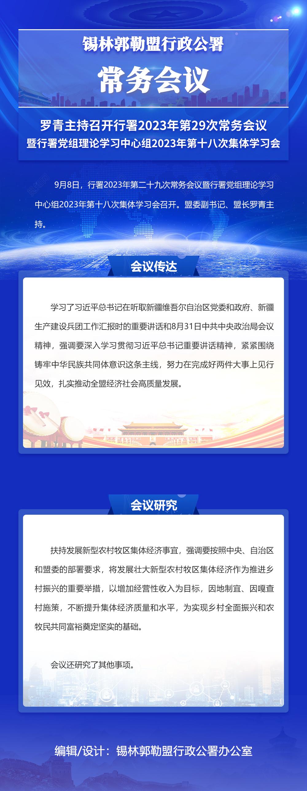 图解:罗青主持召开行署2023年第29次常务会议暨行署党组理论学习中心组2023年第十八次集体学习会_锡林郭勒盟行政公署