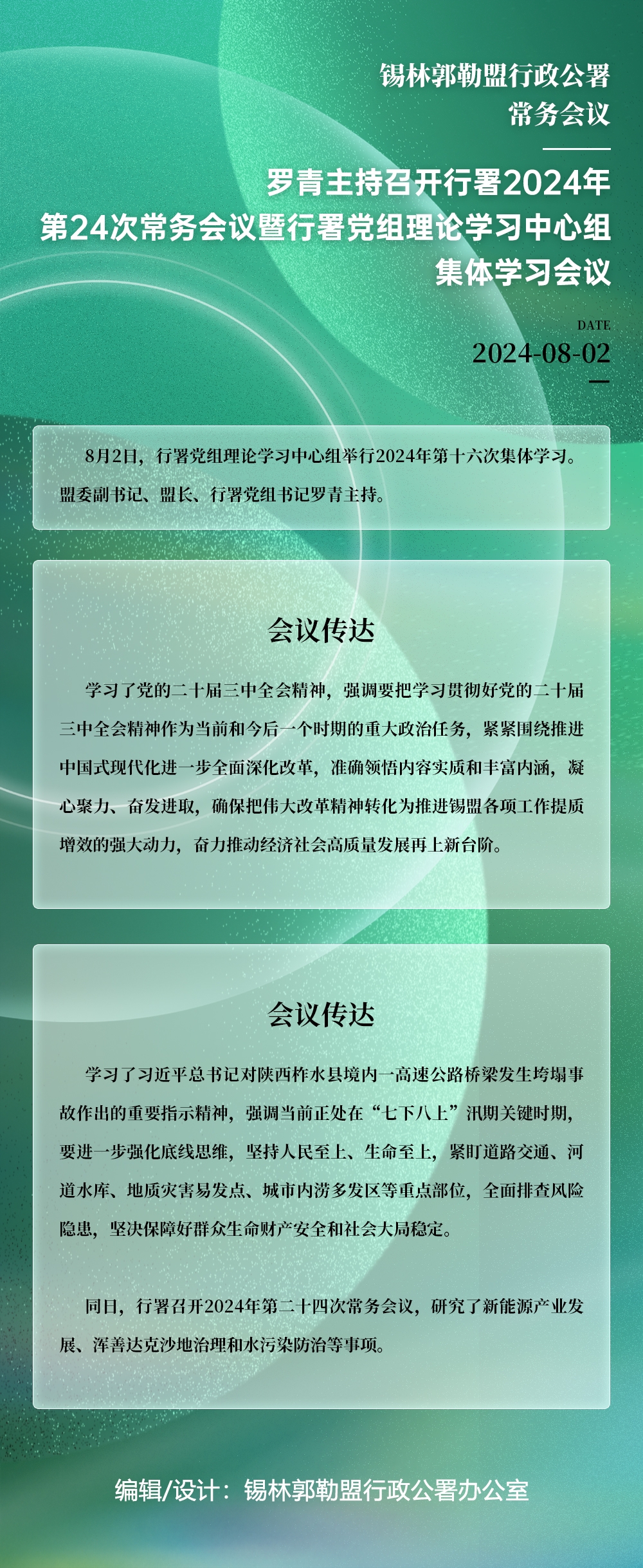 图解:罗青主持召开行署2024年第24次常务会议暨行署党组理论学习中心组集体学习会议_锡林郭勒盟行政公署