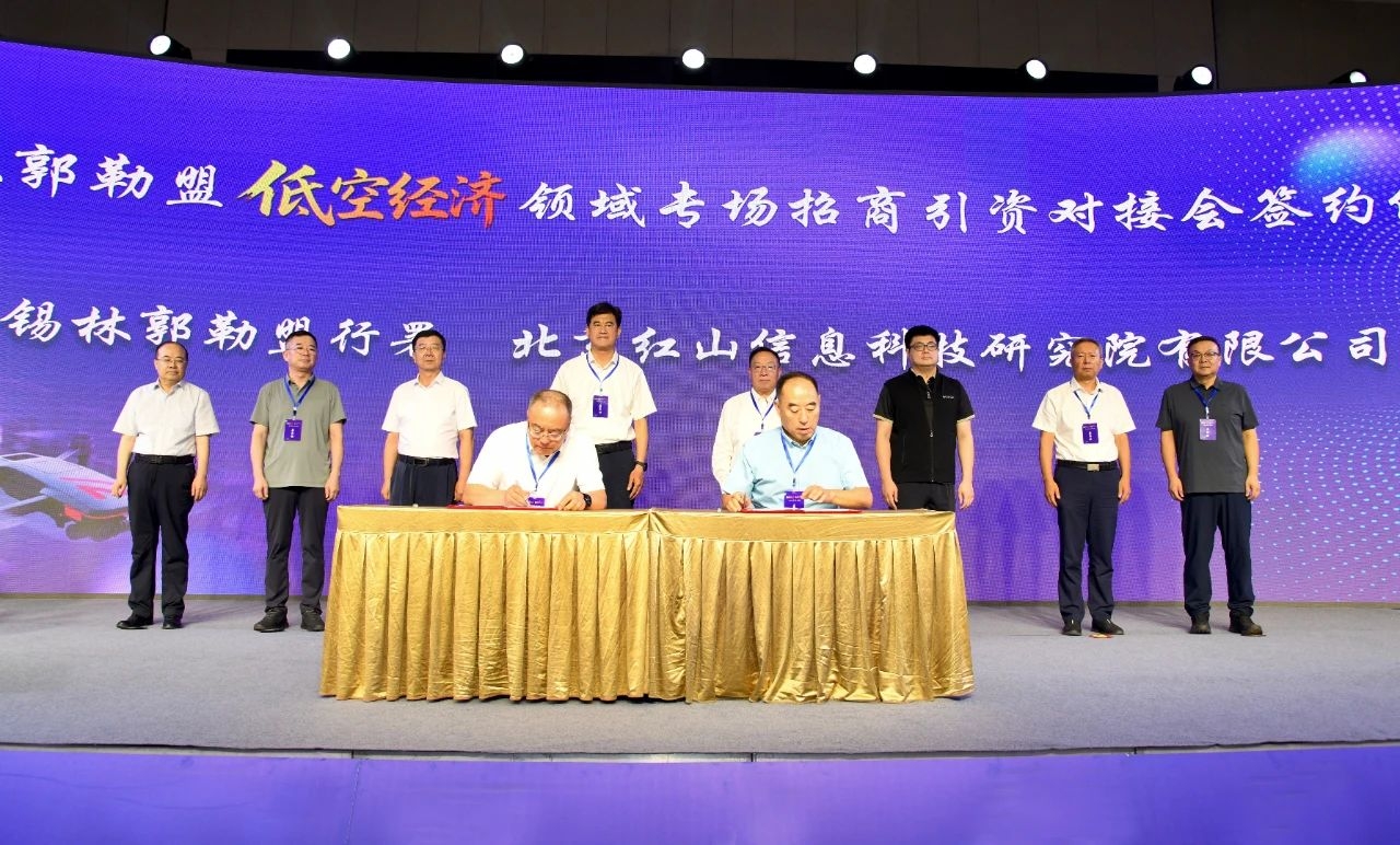 活动现场,锡林郭勒盟行署与北京红山信息科技研究院有限公司、深圳联合飞机科技有限公司、湖南省致空装备制造有限公司签约,在低空通信网建设、服务保障、技术研发、适航检测等内容上达成合作意向。