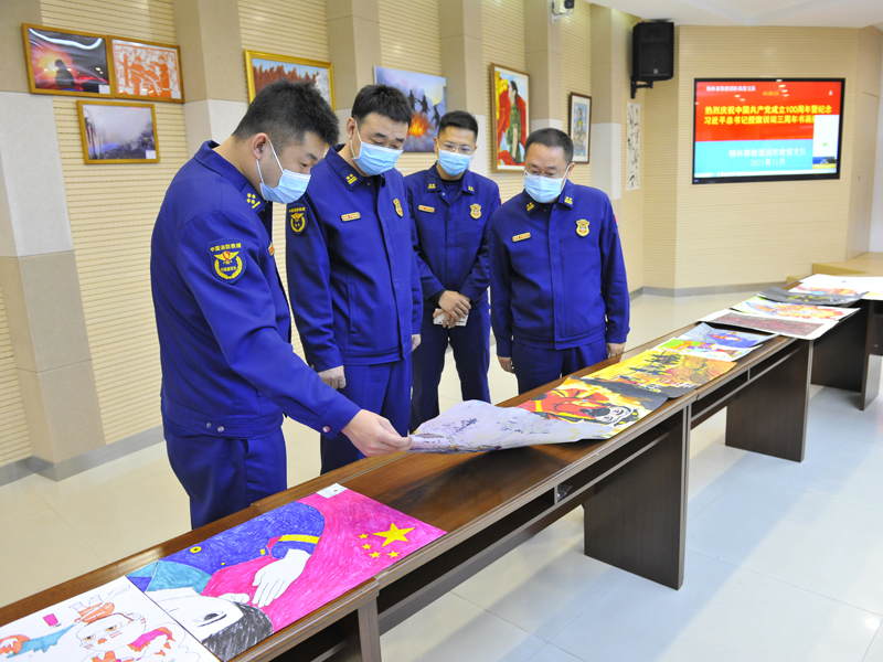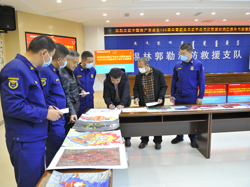 支队邀请锡林郭勒盟书法家协会副主席张延胜老师、盟书法家协会会员姚香均老师、锡林浩特市美术家协会吕凤洲老师和支队党委成员共同组成评委组。经评委组评审,来自苏尼特右旗大队、苏尼特左旗大队的书法、绘画作品荣获一等奖,来自锡林浩特市大队、西乌珠穆沁旗大队、东乌珠穆沁旗大队、苏尼特左旗大队的5幅作品获二等奖,来自锡林浩特市大队、乌拉盖大队、太仆寺旗大队、镶黄旗大队、西乌珠穆沁旗大队的8幅作品获三等奖。