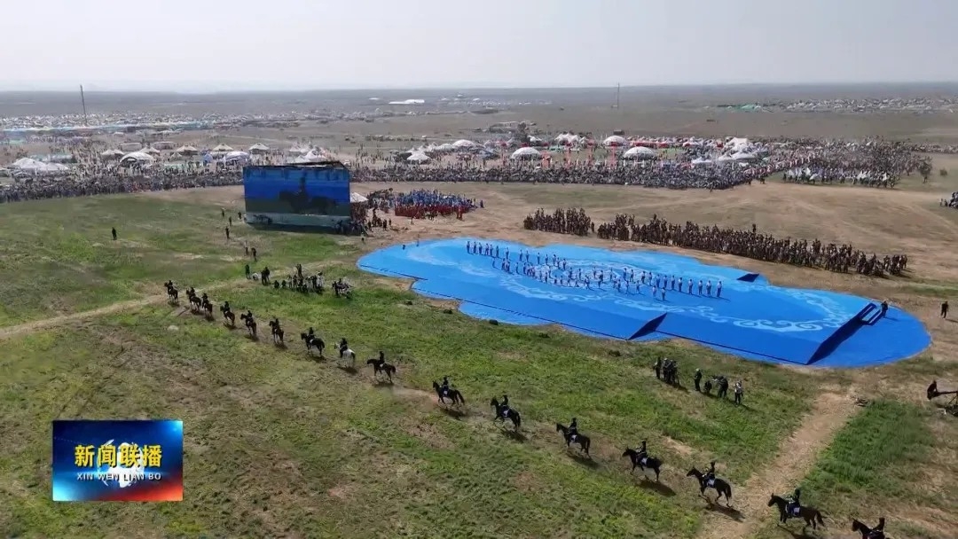 “天蓝草绿,业兴人和,八方来客相聚在草原那达慕盛会。此次精彩无限的那达慕盛会在盛夏锡林郭勒引起社会各界的热烈反响。”