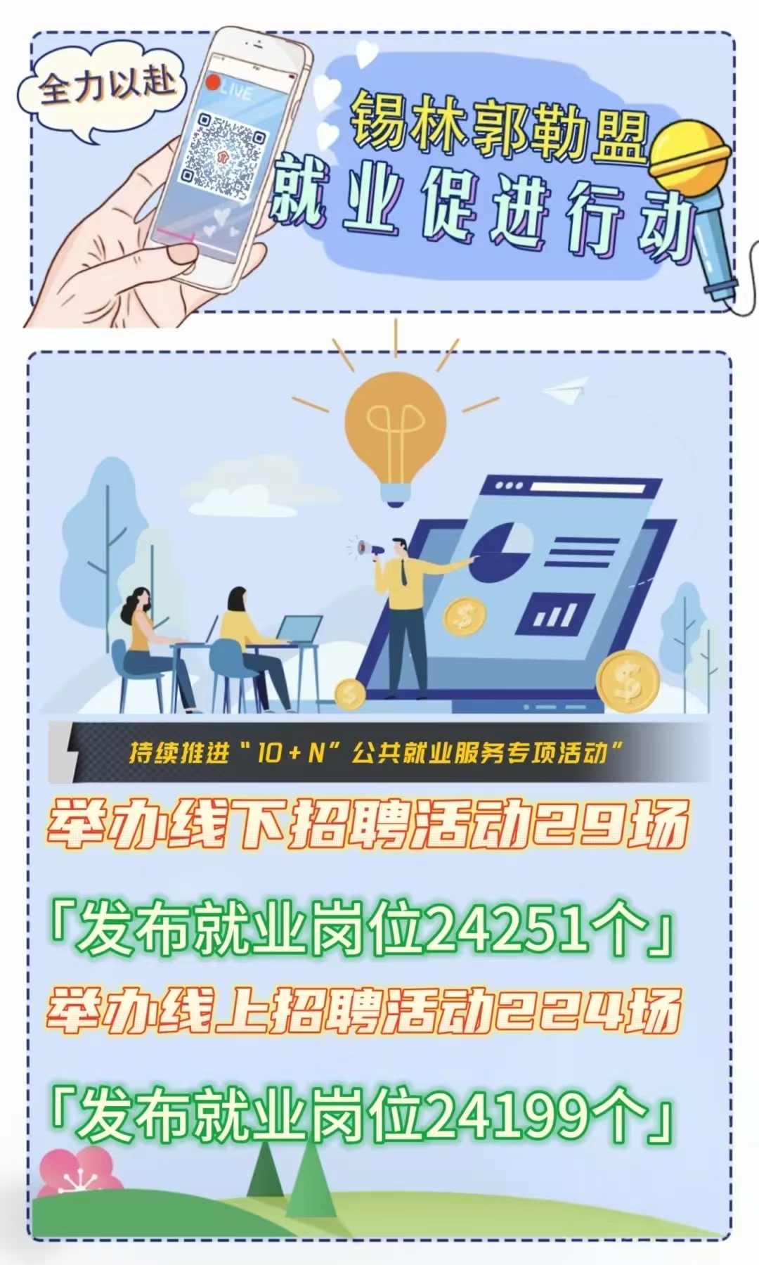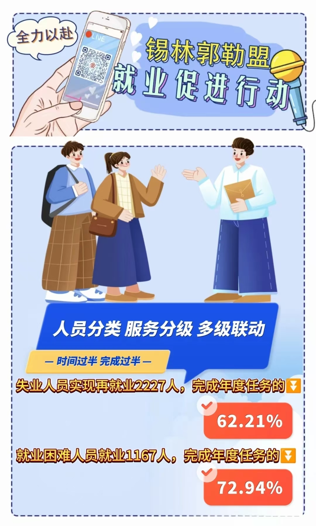 今年以来,锡林郭勒盟人社局聚焦自治区办好“两件大事”、实施“六个工程”、开展“六个行动”,以落实就业促进行动为牵引,加强政策研究、强化统筹调度、细化工作举措,精心部署任务表、合力绘制路线图,全力以赴构建起组织体系纵向贯通、部门合力横向联动、全域全链融合协调的运行机制,人社部门牵头抓总推动部门间统筹协作,各成员单位发挥行业部门主体作用履职尽责,全社会广泛关注的高质量充分就业格局基本形成,各项工作有力有序推进落实,主要指标实现“时间过半、完成过半”,部分指标提前完成年度任务,各项指标走在全区前列。