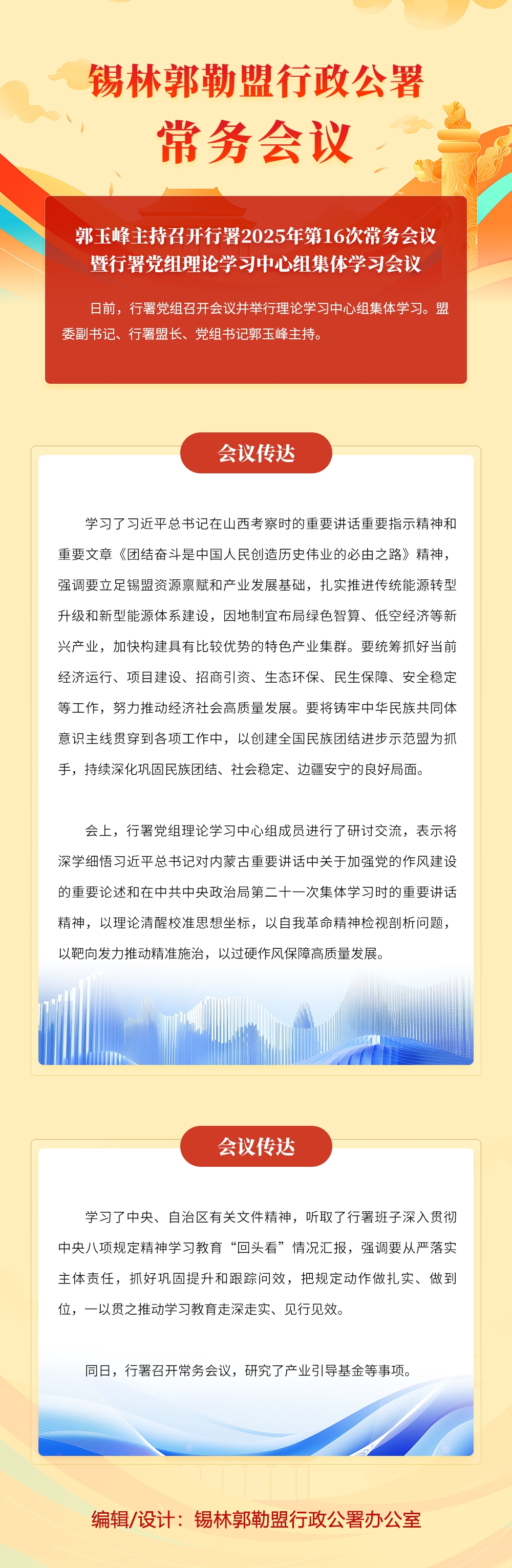 图解:郭玉峰主持召开行署2025年第16次常务会议暨行署党组理论学习中心组集体学习会议_锡林郭勒盟行政公署
