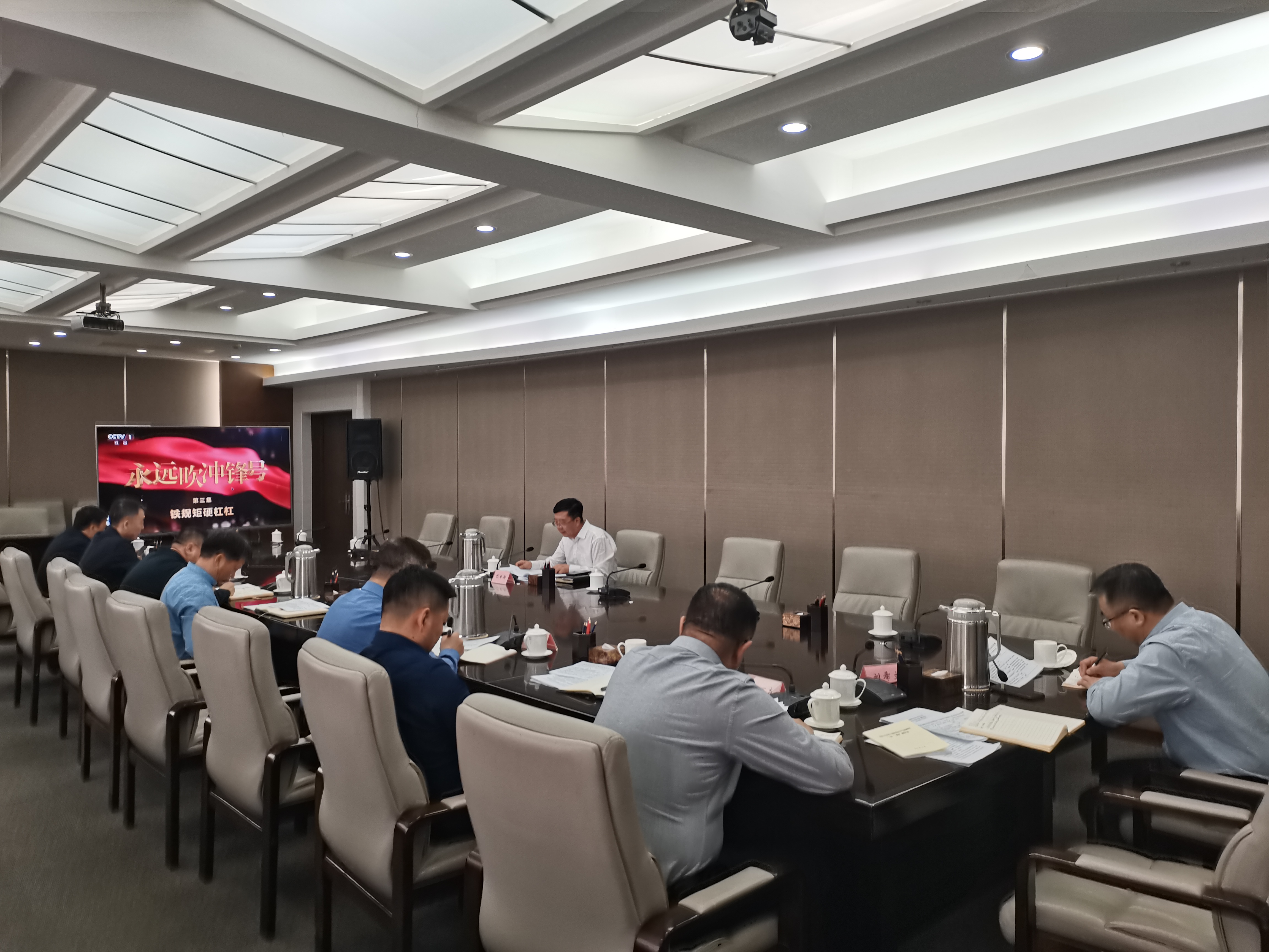 会议传达学习了盟委关于贯彻落实中央八项规定精神进一步加强作风建设的有关文件精神,审议通过《行政公署办公室2023年机关党风廉政建设和反腐败工作要点》,集中观看了警示教育专题片《永远吹冲锋号》第三集《铁规矩硬杠杠》。