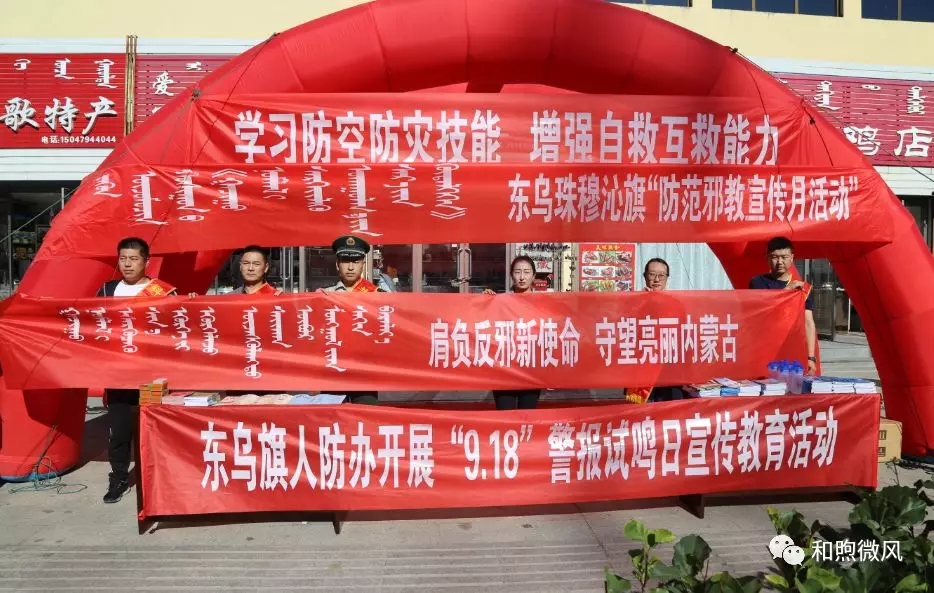 9月18日上午,借助人防办组织开展的“9.18”警报试鸣日宣传教育活动,东乌旗反邪教协会组织志愿者开展了“肩负反邪新使命,守望亮丽内蒙古”主题反邪教宣传教育活动。