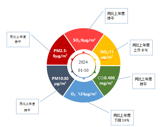| 概述:生态环境质量:2024年1-10月锡市城区环境空气质量优良率96.4% | |||