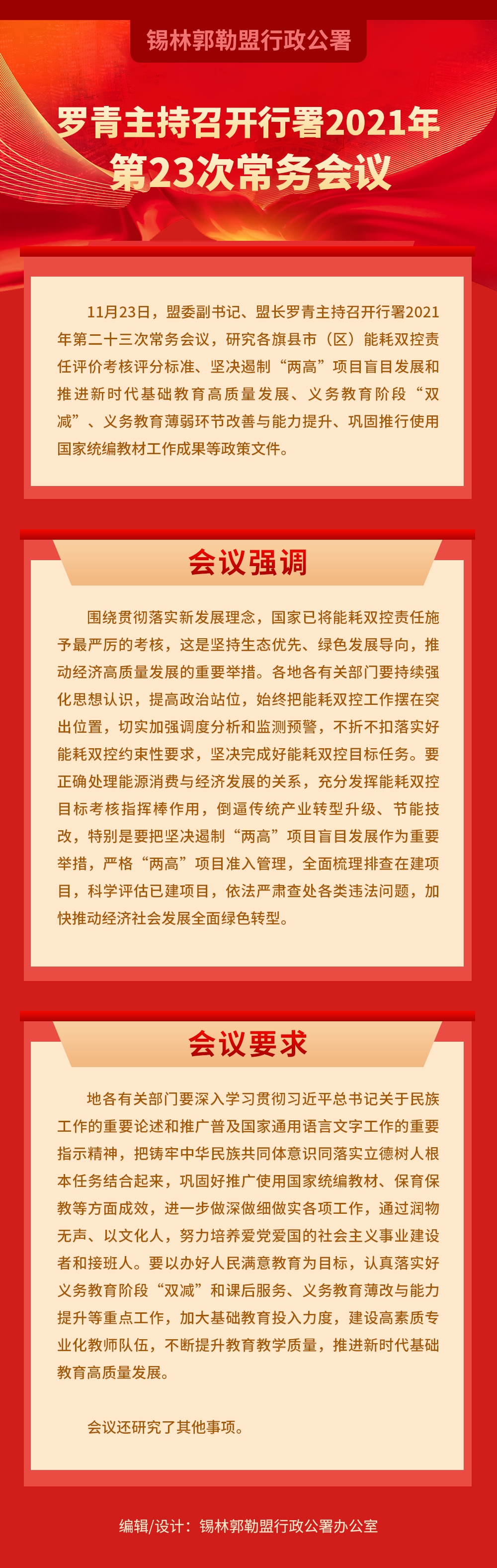 图解:罗青主持召开行署2021年第23次常务会议_锡林郭勒盟行政公署
