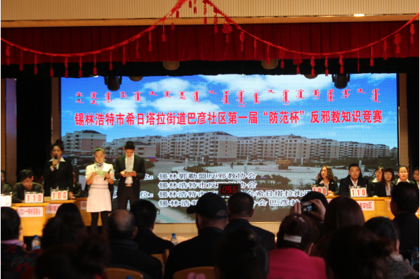 3月18日上午,由锡林郭勒盟反邪教协会、锡林浩特市反邪教协会主办,希日塔拉街道办事处反邪教分会、希办巴彦社区反邪教支会承办的第一届“防范杯”反邪教知识竞赛,在锡市总工会职工文体活动中心开赛。希日塔拉街道办事处各社区干部、居民、辖区企业职工组成的9支代表队参赛。比赛共设必答题、抢答题、风险题3个答题环节,经过2个小时紧张激烈的角逐,巴彦社区、查哈尔社区、那达慕社区三支代表队分获比赛第一、二、三名。比赛结束后,辖区居民还自发组织表演了歌舞节目,进一步活跃了活动气氛。同时,希日塔拉街道巴彦社区分赛场于3月15日开展的由辖区200余名居民参加的第一届“防范杯”台球、乒乓球、棋牌比赛也顺利结束.