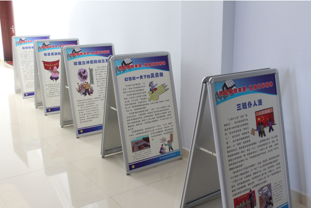 在赛场外摆放反邪教宣传展架进行反邪教宣传