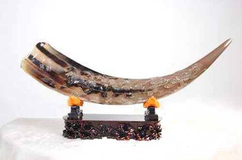 【角雕】主要就是用牛角、羊角、狍子角、鹿角等雕刻出各种精美的日用品和玲珑的工艺品。有刀壳、刀把、顶针、火柴盒、烟盒、茶叶桶等等,件件都是精美绝伦的工艺品。