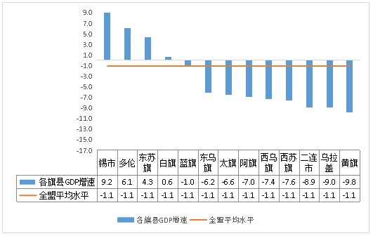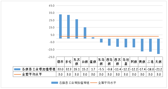 图3:全盟及各旗县市(区)工业增加值增速情况