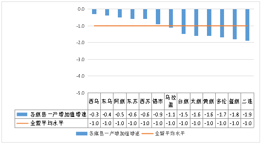 图2:全盟及各旗县市(区)第一产业增加值增速情况