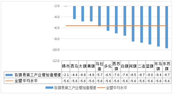 图4:全盟及各旗县市(区)第三产业增加值增速情况