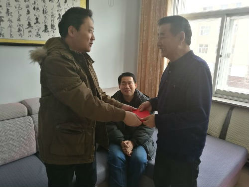 在春节来临之际,为充分体现党组织对老党员的关心和爱护,进一步增强党组织的凝聚力和吸引力。2月7日下午,行署副秘书长王刚率领“春节慰问”小分队代表行署办党组对退休老党员进行走访慰问,并送上节日的祝福。