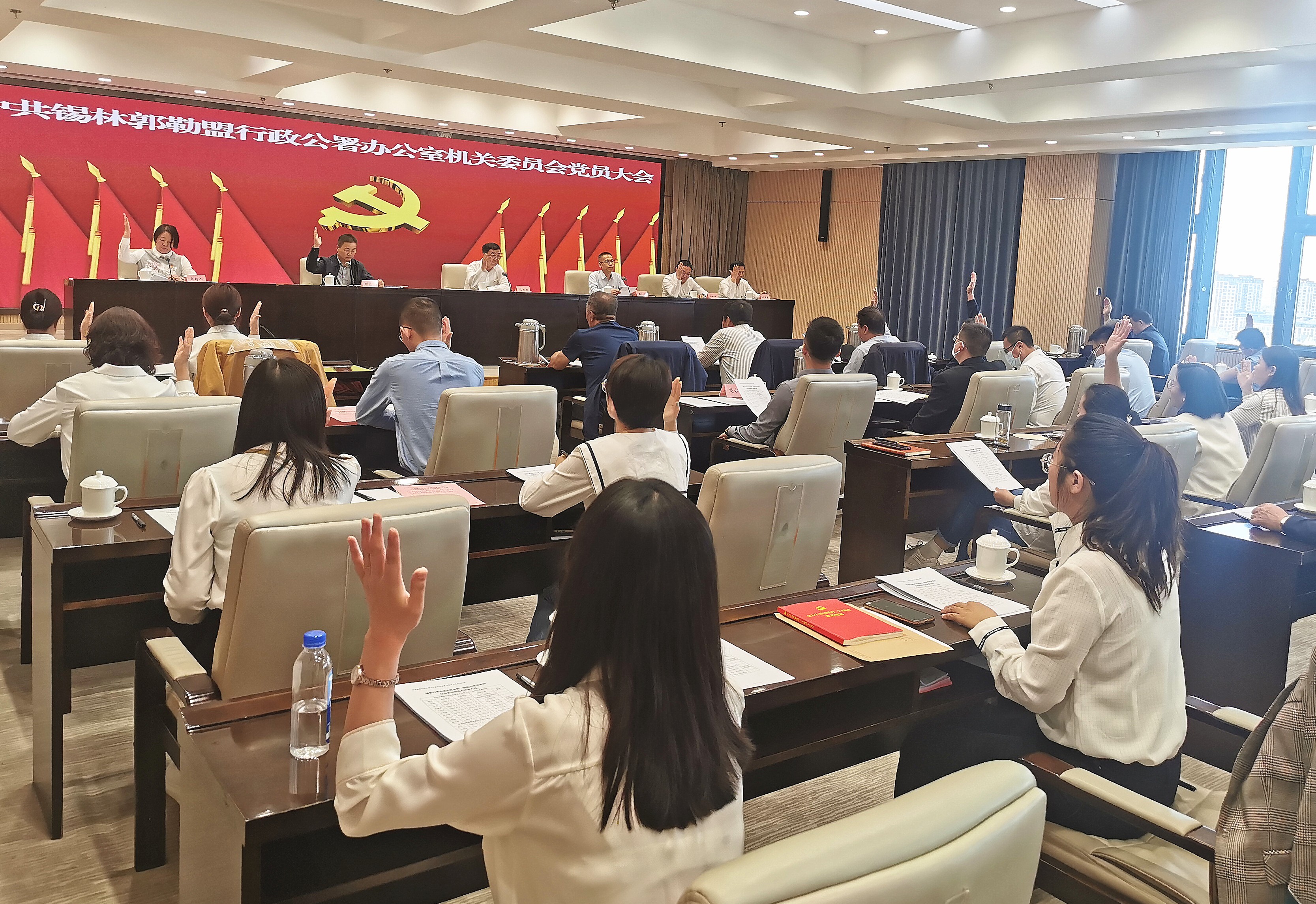 大会书面审议《中共锡盟行政公署办公室第一届机关纪律检查委员会工作报告》《中共锡盟行政公署办公室机关委员会关于党费收缴使用情况报告》。表决通过了大会选举办法(草案)、办公室机关党委委员和机关纪委委员候选人名单、监票人和计票人名单。大会采取无记名投票方式,差额选举产生了行署办新一届机关党委委员7名、机关纪委委员3名。新一届机关党委、机关纪委分别召开了第一次委员会议,选举产生了机关党委书记、副书记和机关纪委书记。