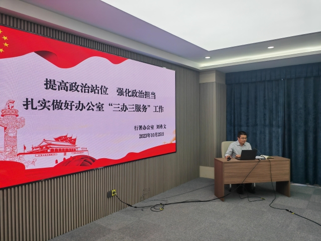 10月25日,行政公署办公室副主任刘希文以《提高政治站位 强化政治担当 扎实做好办公室“三办三服务”工作》为题,为机关第一党支部党员干部作了主题教育专题党课报告。