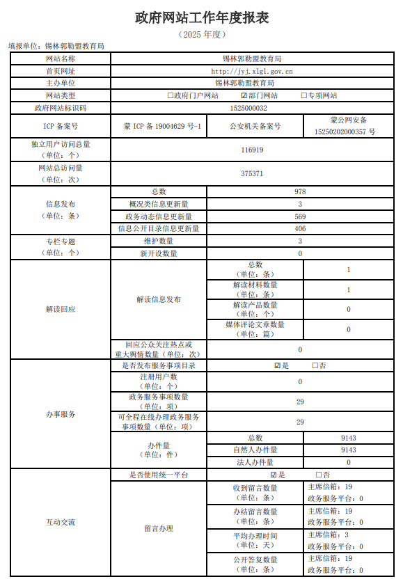 2025年锡林郭勒盟政府网站年报