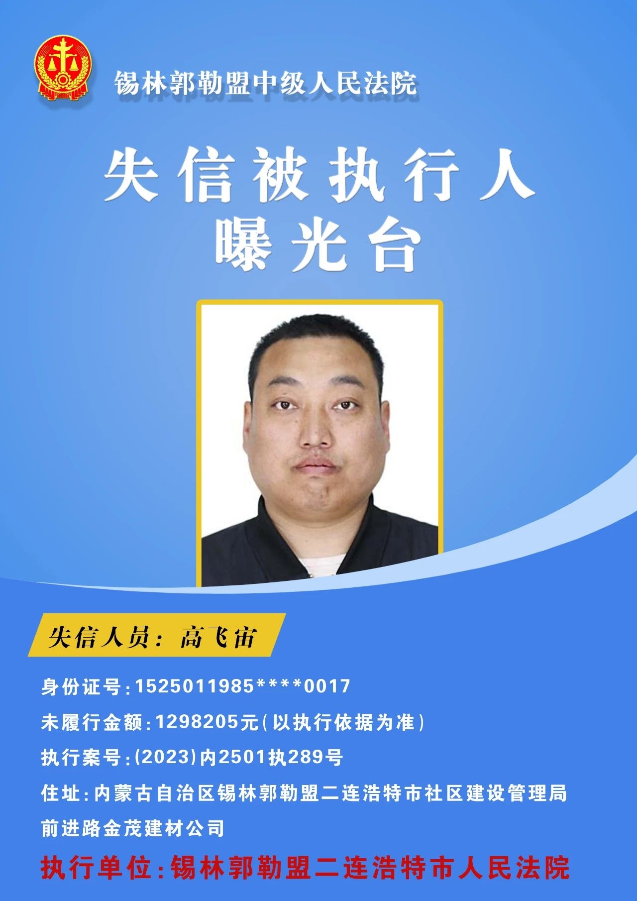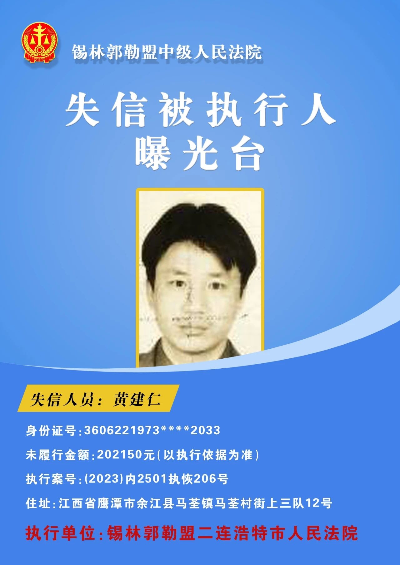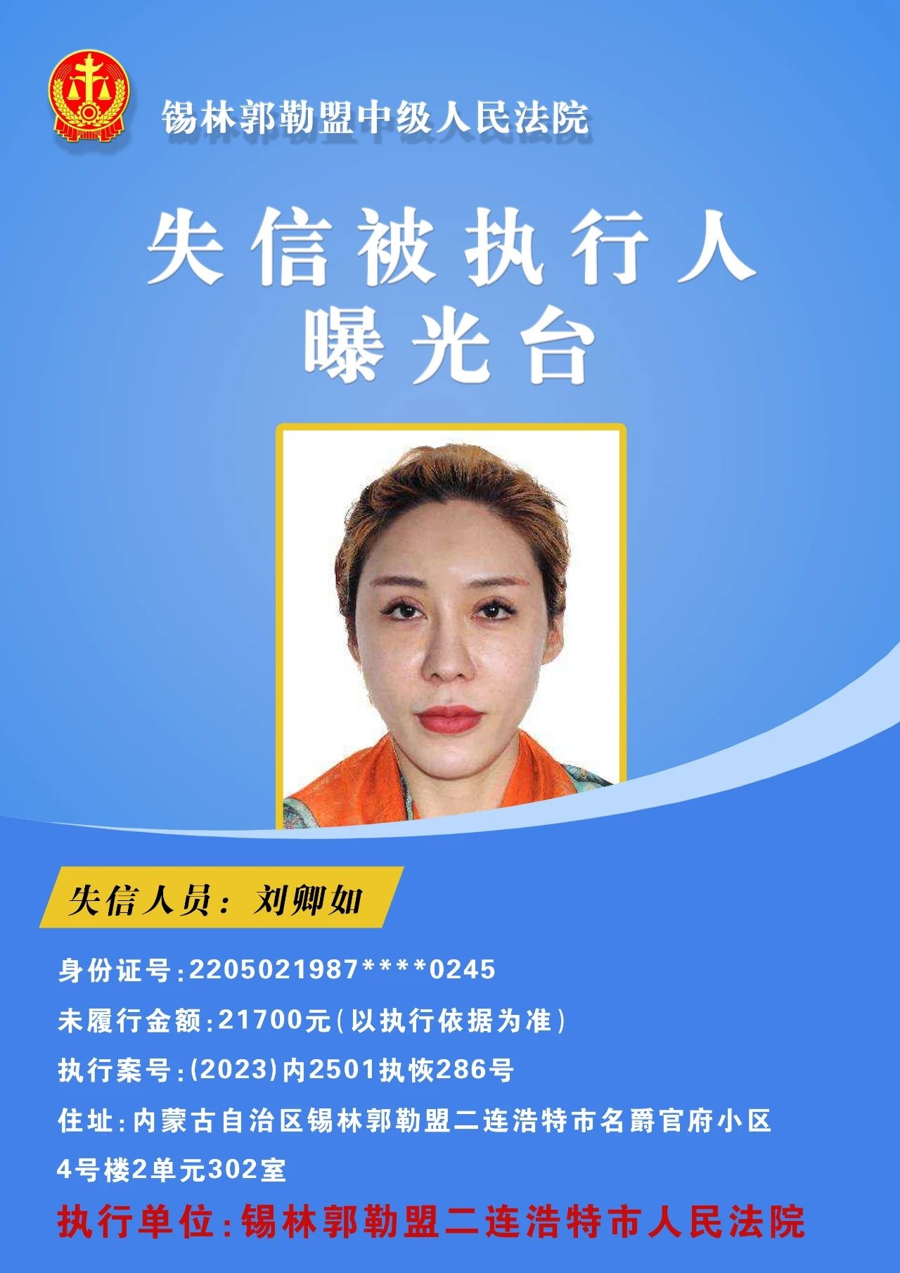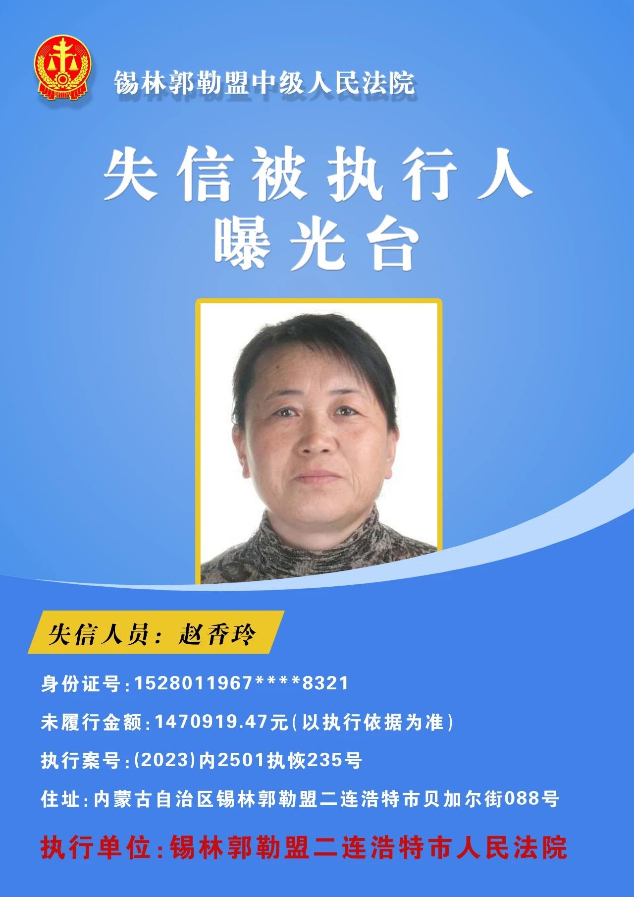 为切实保障申请执行人的合法权益,促使被执行人自觉履行生效法律文书确定的义务,推进社会信用体系建设,维护司法权威,根据 《最高人民法院关于公布失信被执行人名单信息的若干规定》的相关规定,经依法审查,现锡林郭勒盟中级人民法院将下列失信被执行人名单予以公布,希望社会各界予以监督,如有发现失信被执行人线索,请及时举报。