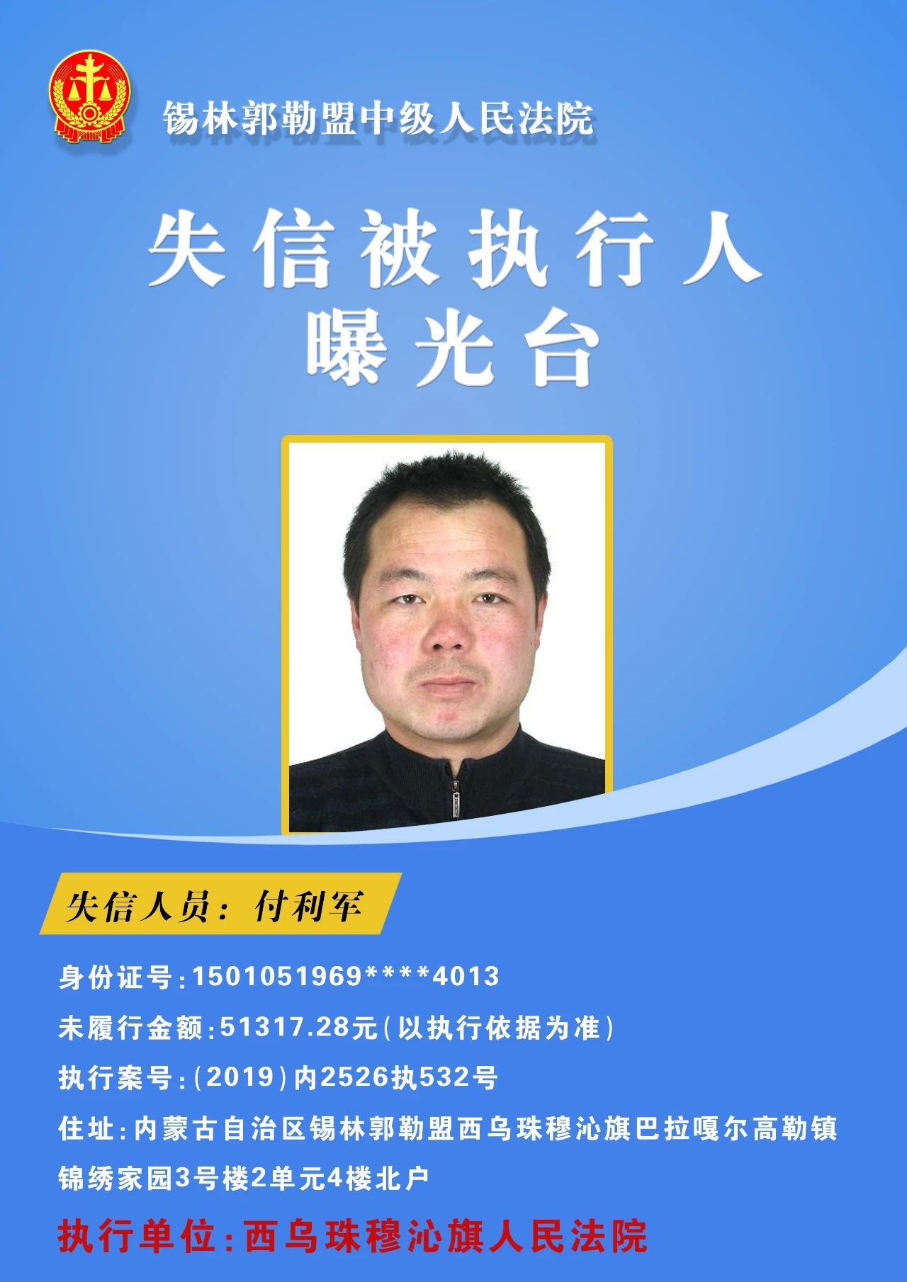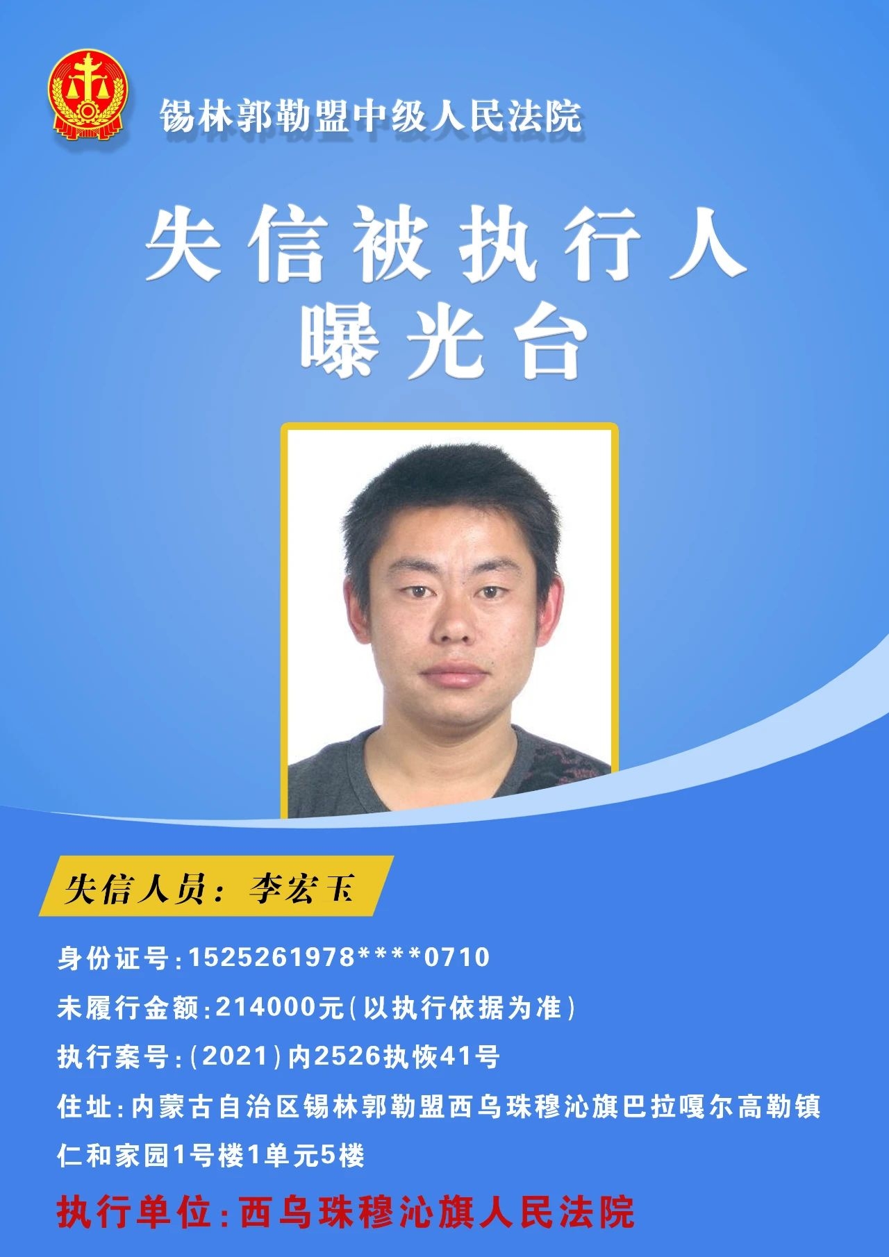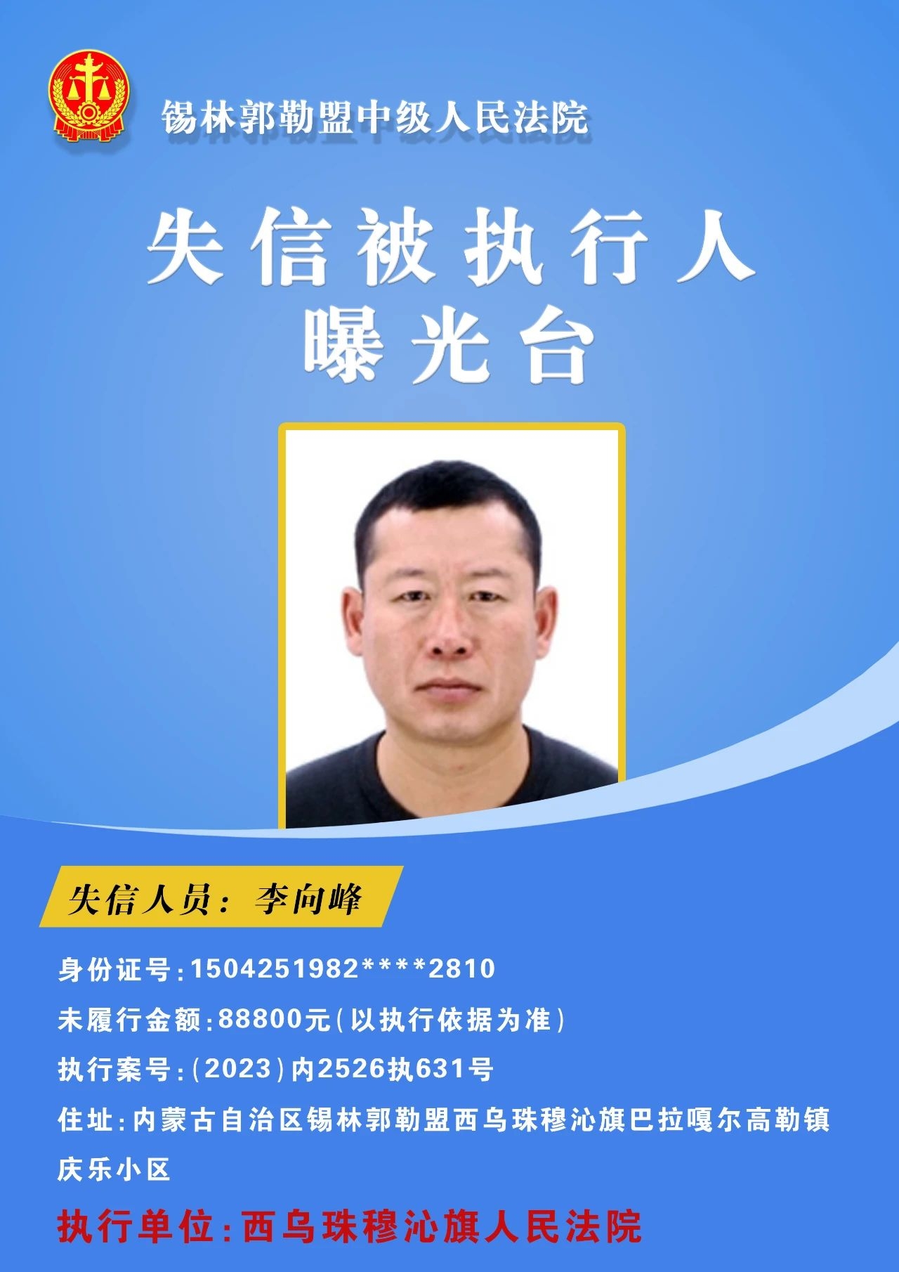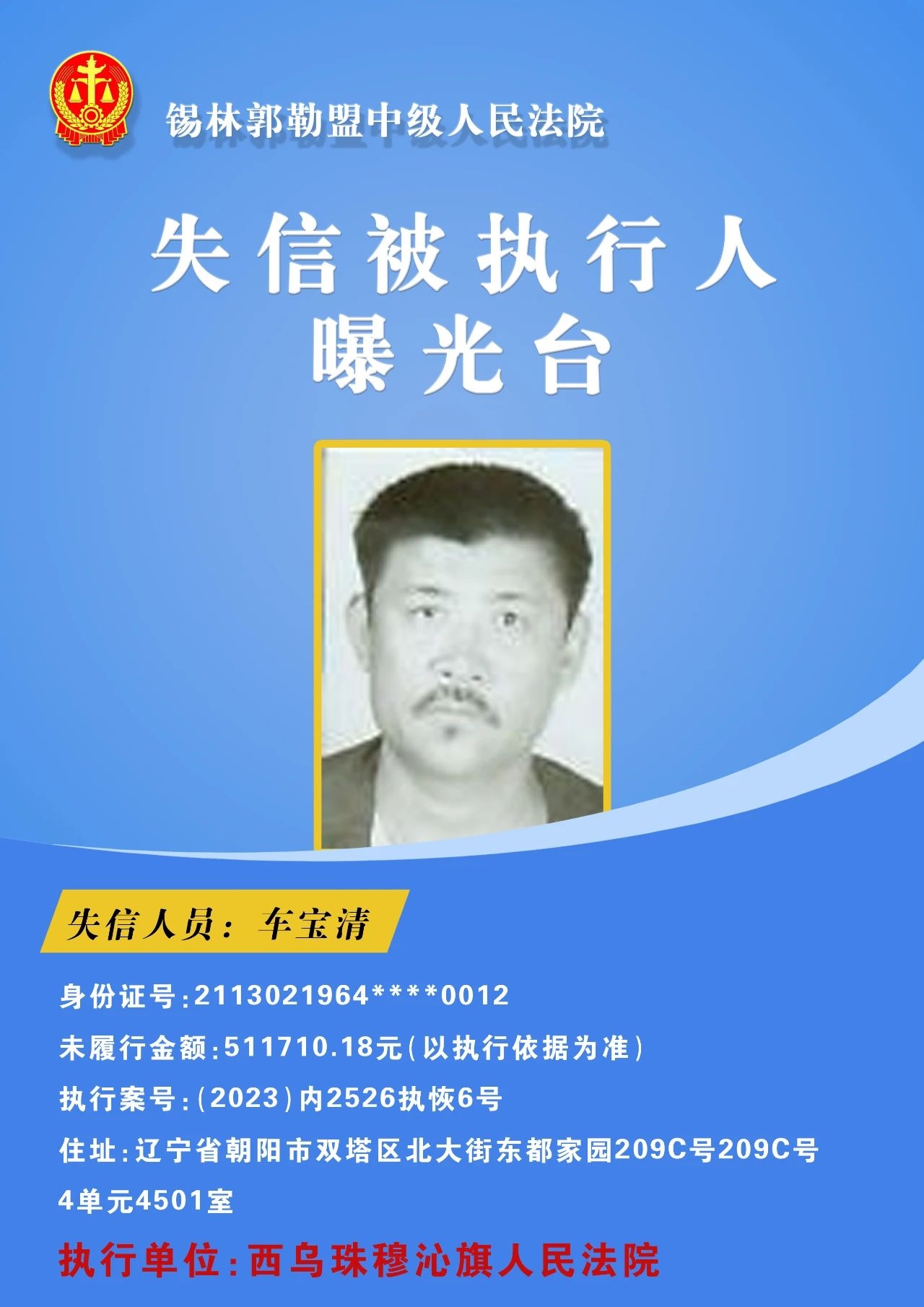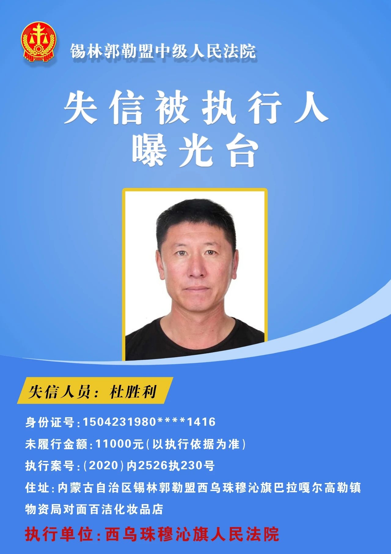 为切实保障申请执行人的合法权益,促使被执行人自觉履行生效法律文书确定的义务,推进社会信用体系建设,维护司法权威,根据 《最高人民法院关于公布失信被执行人名单信息的若干规定》的相关规定,经依法审查,现锡林郭勒盟中级人民法院将下列失信被执行人名单予以公布,希望社会各界予以监督,如有发现失信被执行人线索,请及时举报。