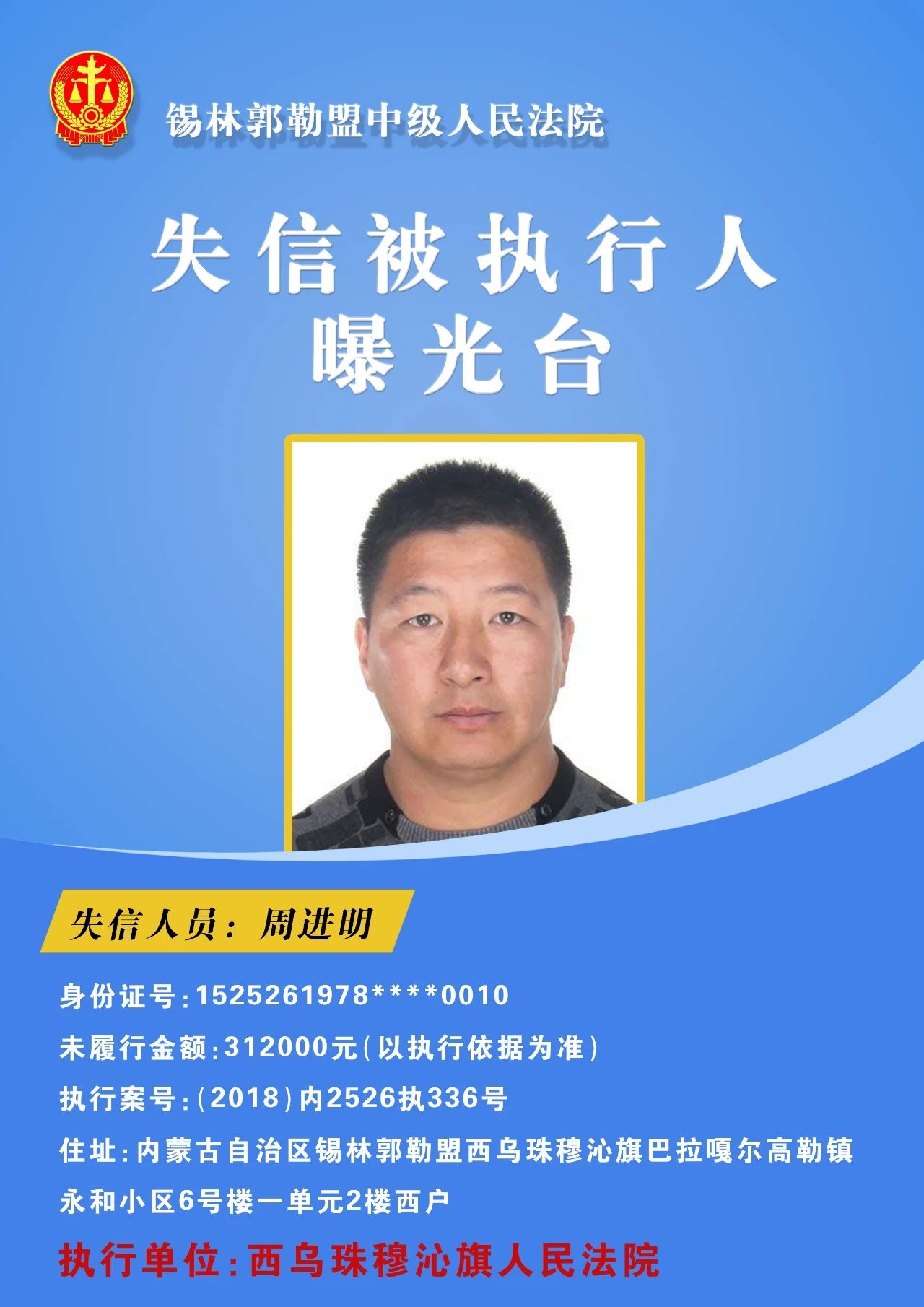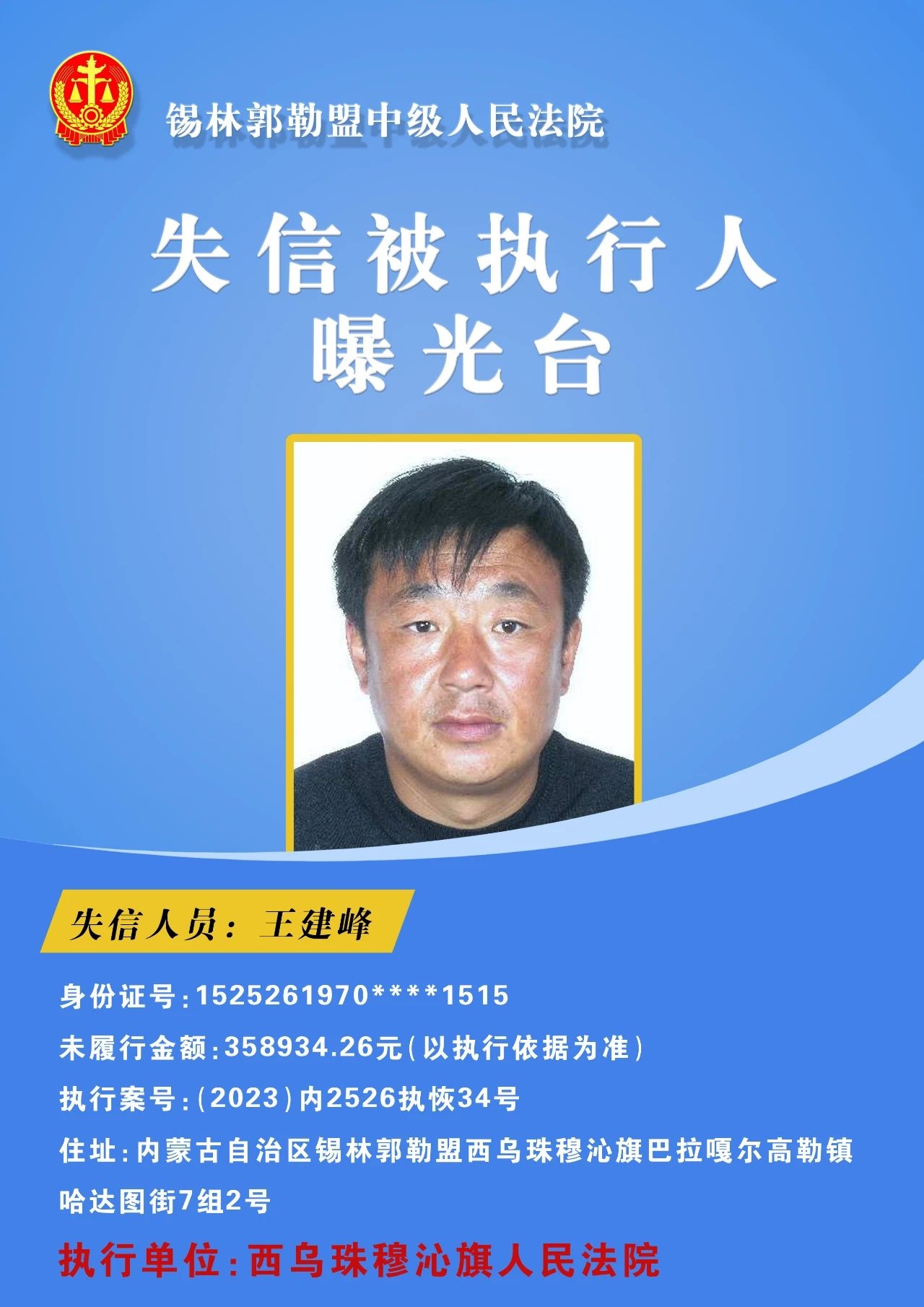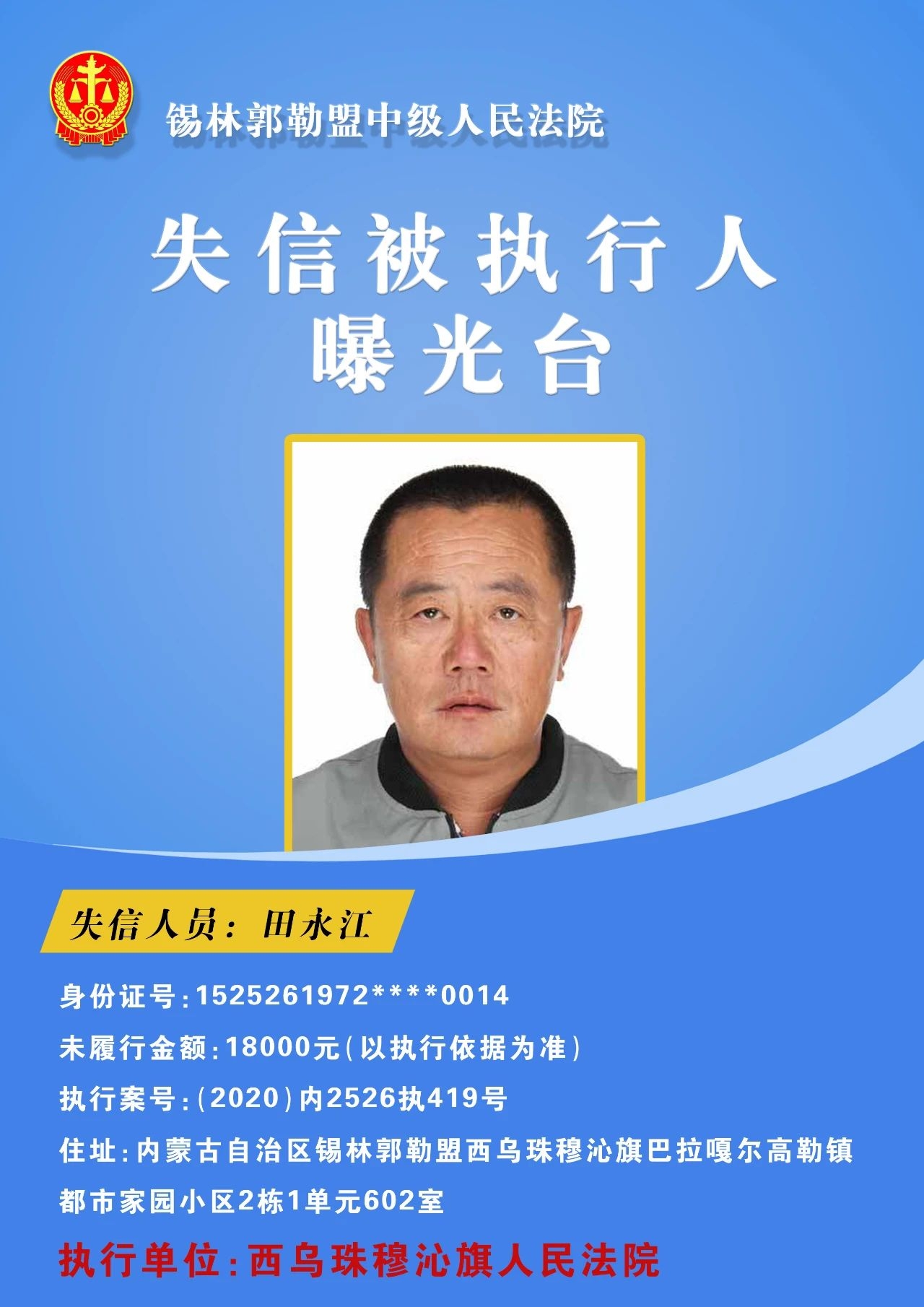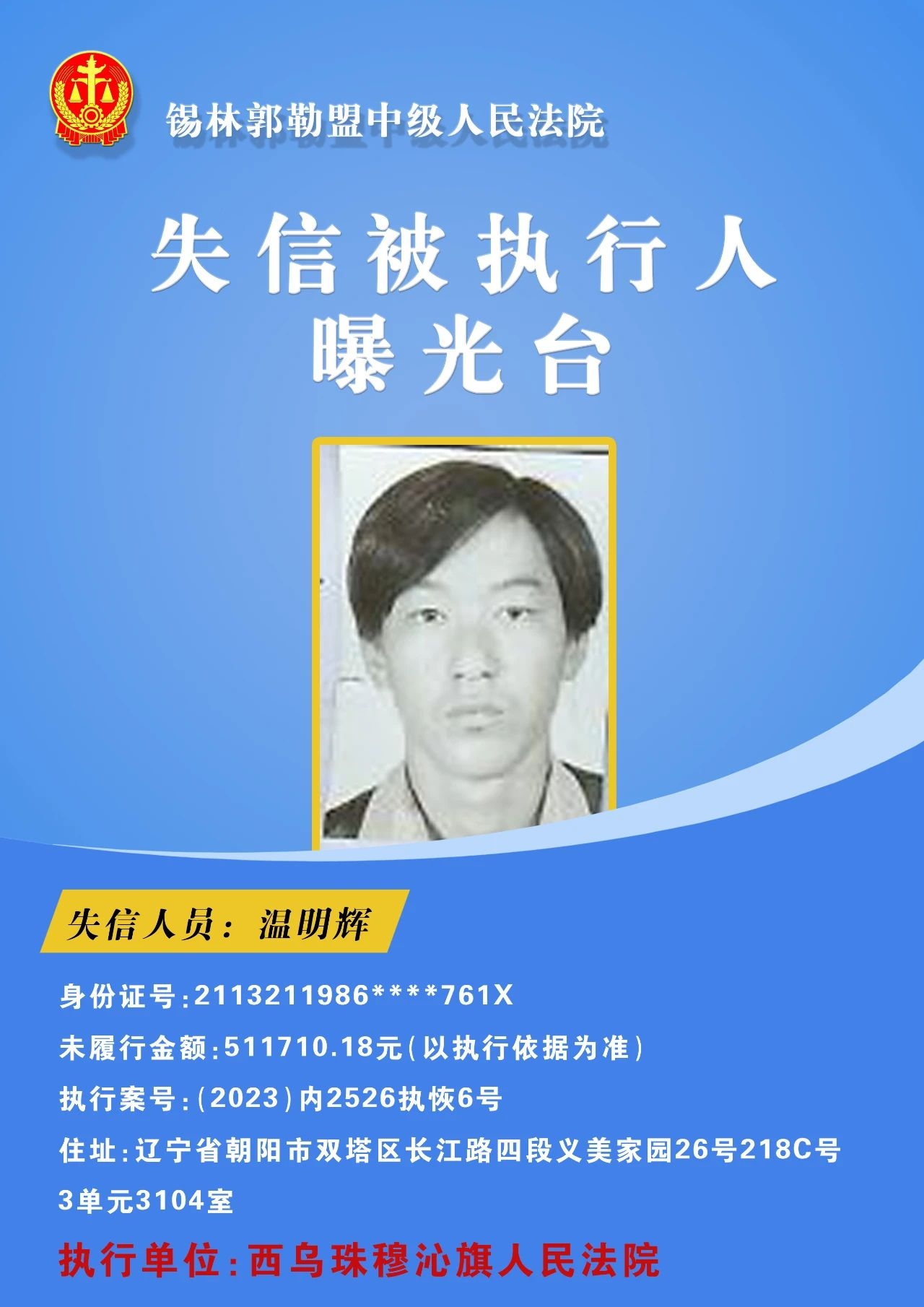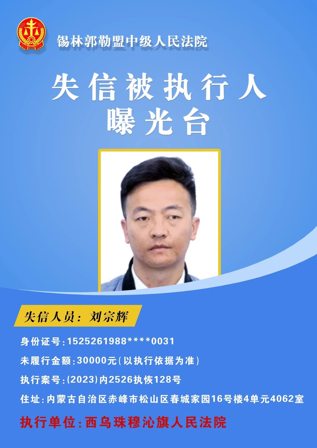 为切实保障申请执行人的合法权益,促使被执行人自觉履行生效法律文书确定的义务,推进社会信用体系建设,维护司法权威,根据 《最高人民法院关于公布失信被执行人名单信息的若干规定》的相关规定,经依法审查,现锡林郭勒盟中级人民法院将下列失信被执行人名单予以公布,希望社会各界予以监督,如有发现失信被执行人线索,请及时举报。