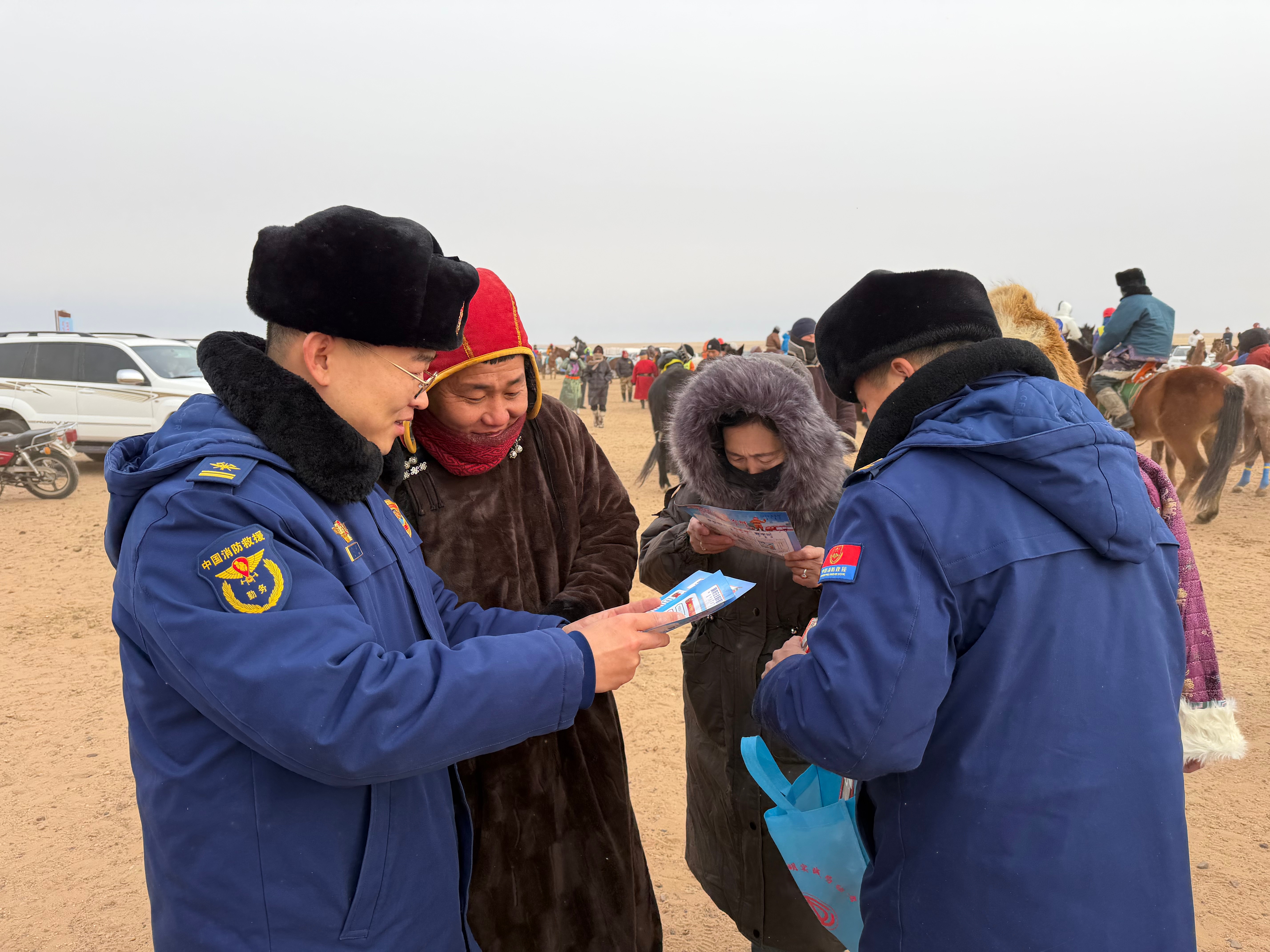 凛冬草原燃激情,骏马奔腾竞风流。1月17日,锡林郭勒第三届冬季蒙古马超级联赛“一市两旗”决赛在苏尼特右旗隆重开赛。为切实筑牢赛事期间消防安全防线,有效提升现场群众与赛事工作人员的消防安全意识和自防自救能力,苏尼特右旗消防救援大队主动靠前、精准发力,深入决赛现场开展了一场接地气、有温度的消防安全宣传活动,以“火焰蓝”守护草原盛会平安。