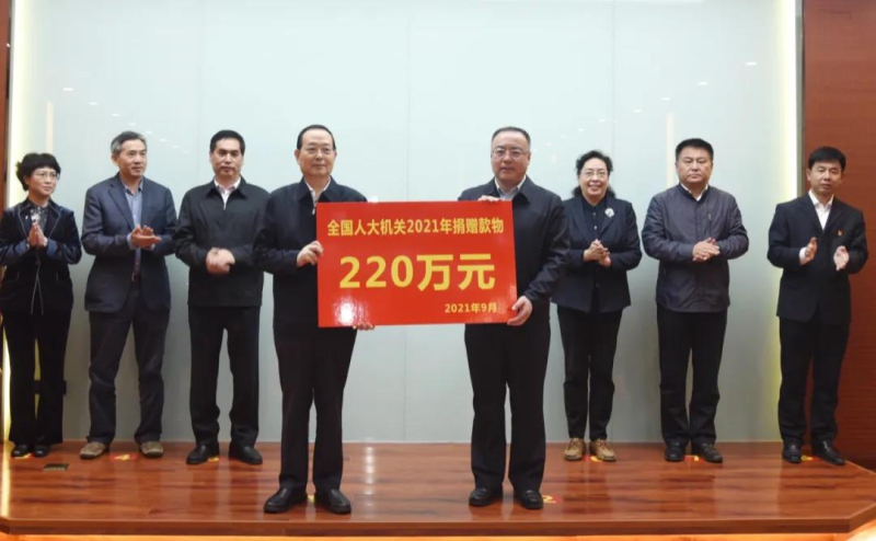 期间,专题调研组还代表全国人大常委会机关和中国下一代教育基金会向太仆寺旗捐赠价值293万元的物资,代表全国人大常委会机关向太仆寺旗捐赠220万元帮扶款物,并移交了“太仆寺旗藜麦”地理标志证明商标。