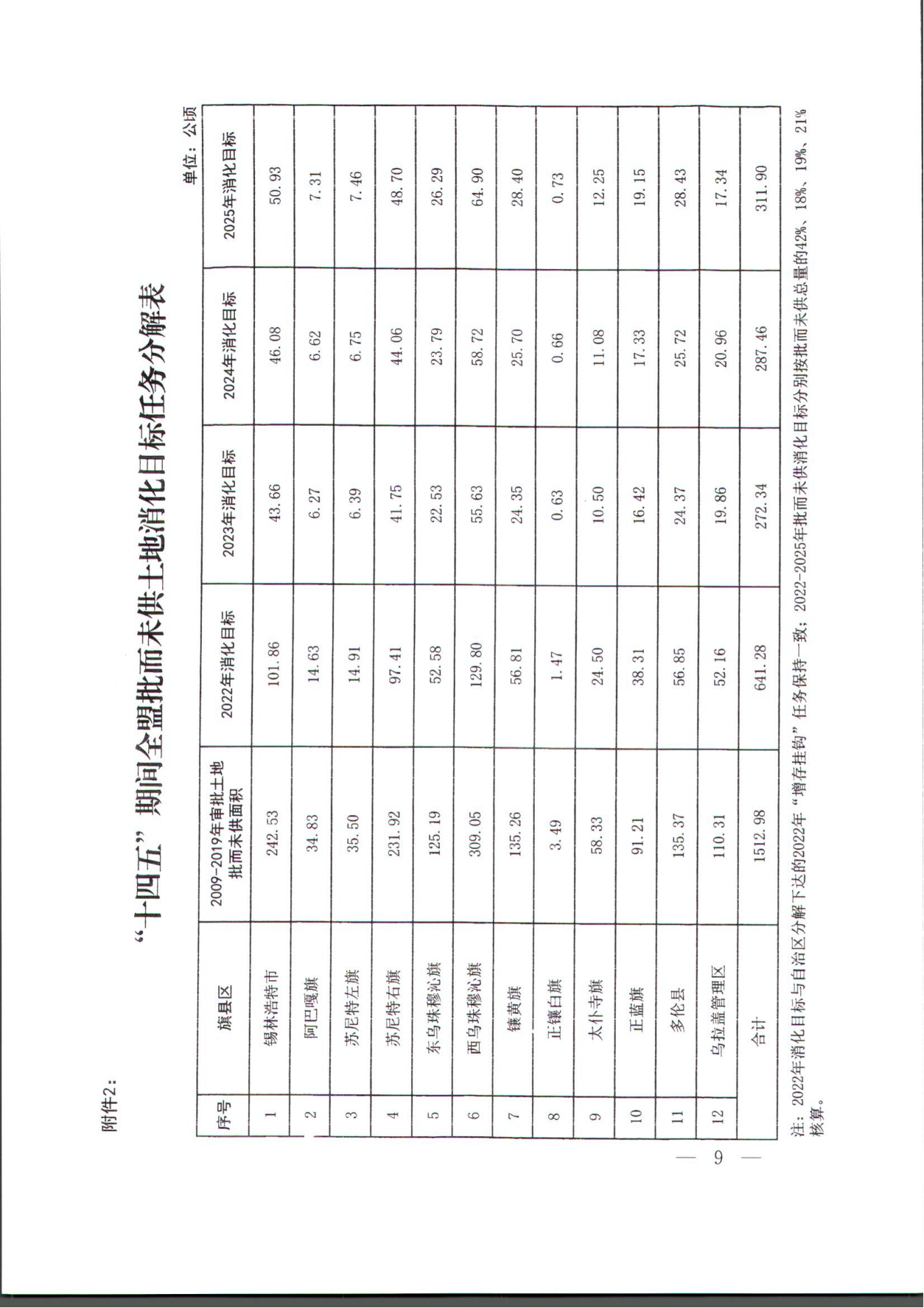 2.“十四五”期间全盟批而未供土地消化目标任务分解表