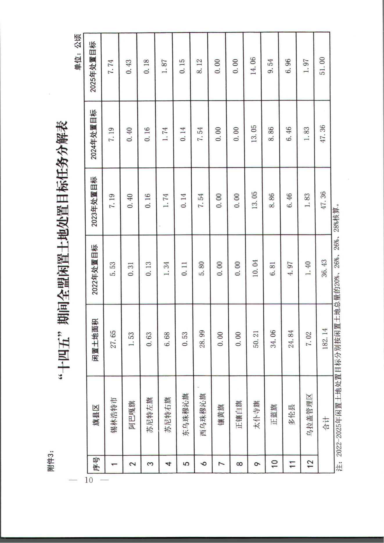 3.“十四五”期间全盟闲置土地处置目标任务分解表