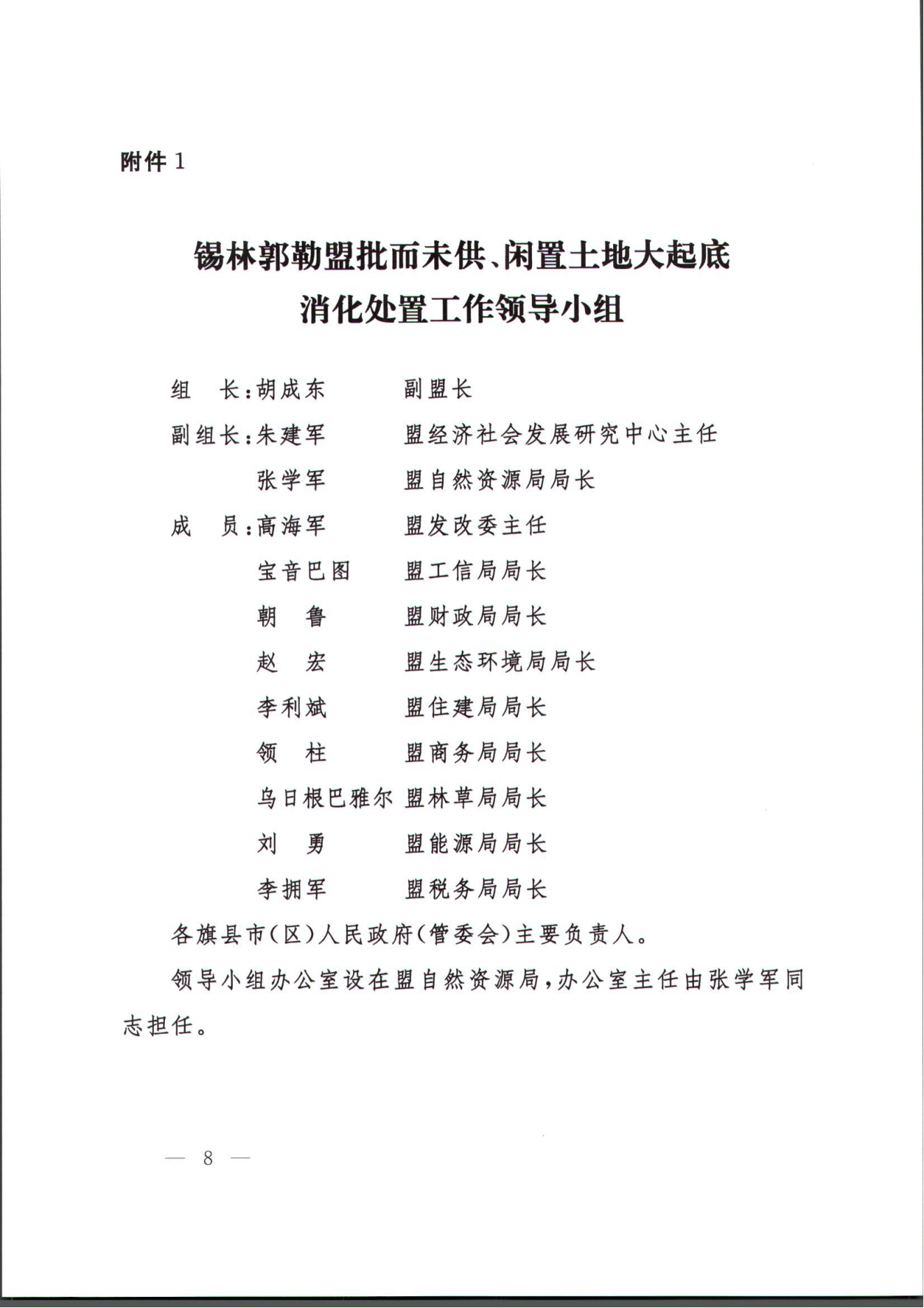 附件:1.锡林郭勒盟批而未供、闲置土地大起底消化处置工作领导小组