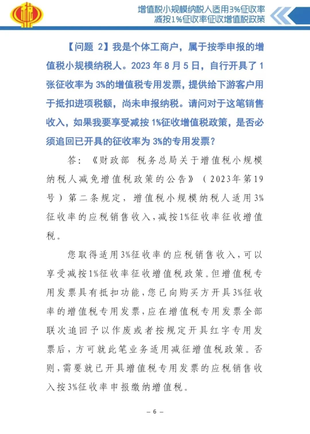 2023年8月以来,围绕支持小微企业和个体工商户发展,党中央、国务院延续优化完善了一系列税费优惠政策。税务总局聚焦纳税人缴费人和基层税务人员反映的热点问题编写了43个答问口径,形成了《支持小微企业和个体工商户发展税费优惠政策即问即答》(2023年版)。