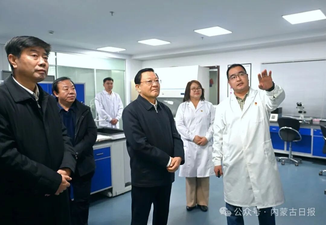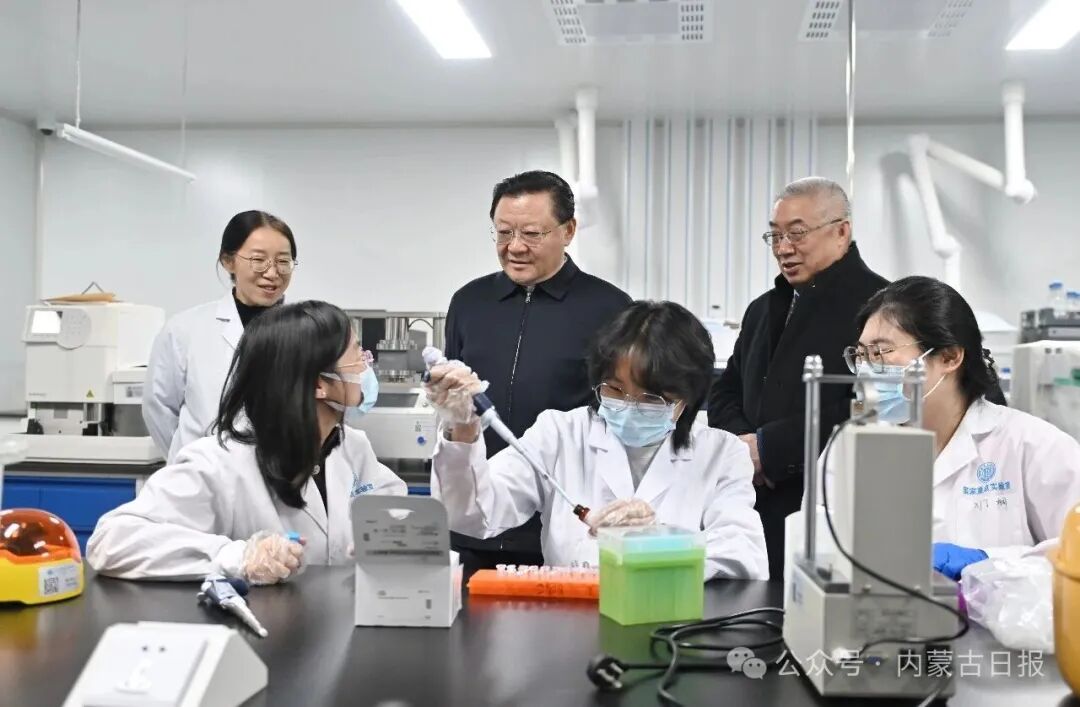 12月16日,自治区党委书记王伟中来到畜牧研究所实验室,认真了解科研平台建设、技术攻关进展。草原云·内蒙古新闻网记者 马建兵 摄